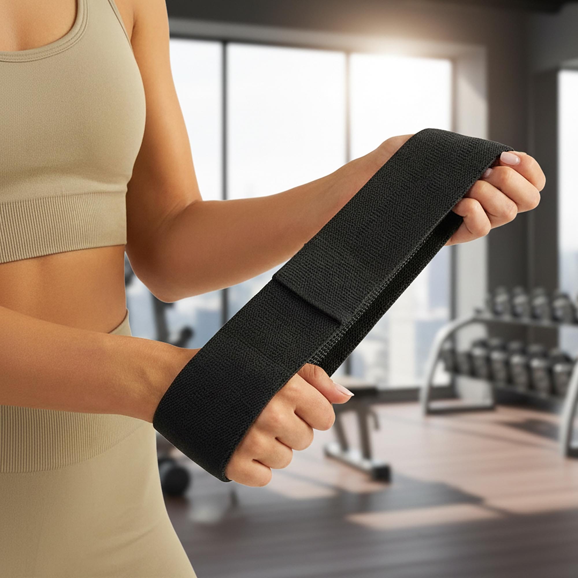 - Komfort i brak rolowania: Szerokość 8 cm oraz specjalna struktura splotu sprawiają, że gumy stabilnie przylegają do nóg. Nie wrzynają się w skórę i nie przesuwają podczas dynamicznych ćwiczeń, takich jak przeskoki czy wykroki.