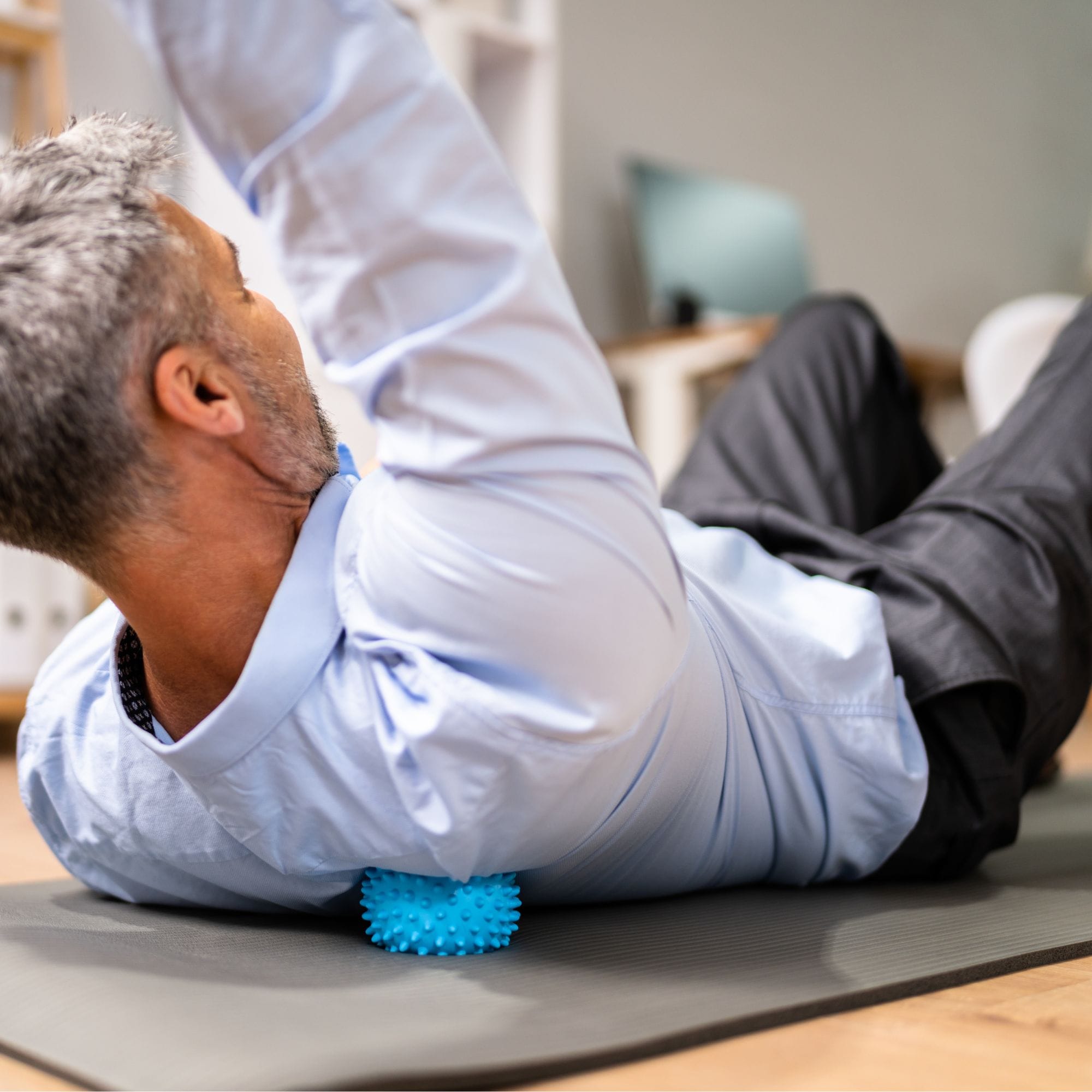 Dla Osób Pracujących Przy Biurku: Pomaga rozładować napięcie w szyi i górnej części pleców (mięśnie karku) powstałe od długotrwałego siedzenia. Rolowanie stóp może również przynieść natychmiastową ulgę i zniwelować uczucie zmęczenia.