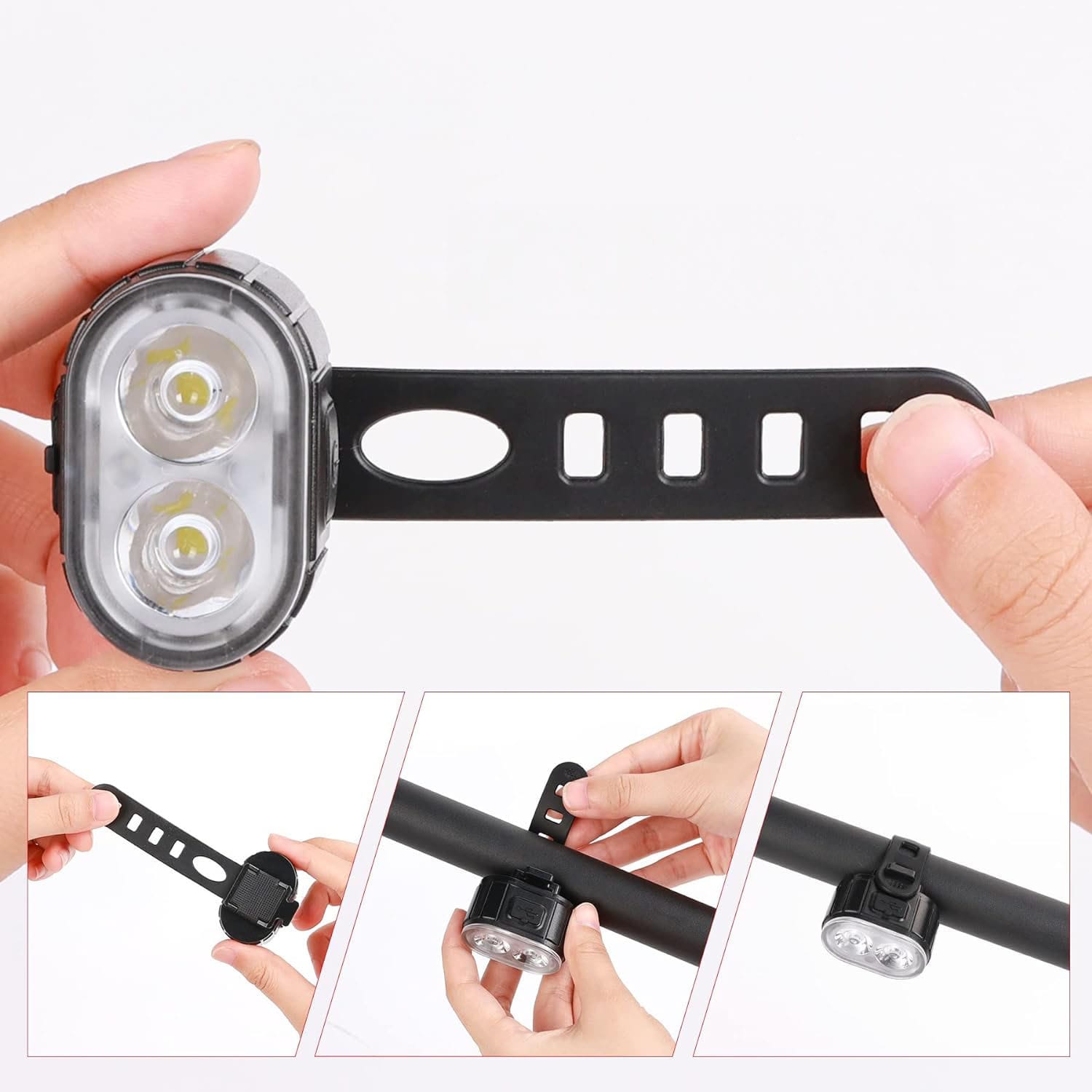 Lampka posiada elastyczne i regulowane mocowania. Za ich pomocą przyczepisz światło to każdego elementu, który powinien być oświetlony.