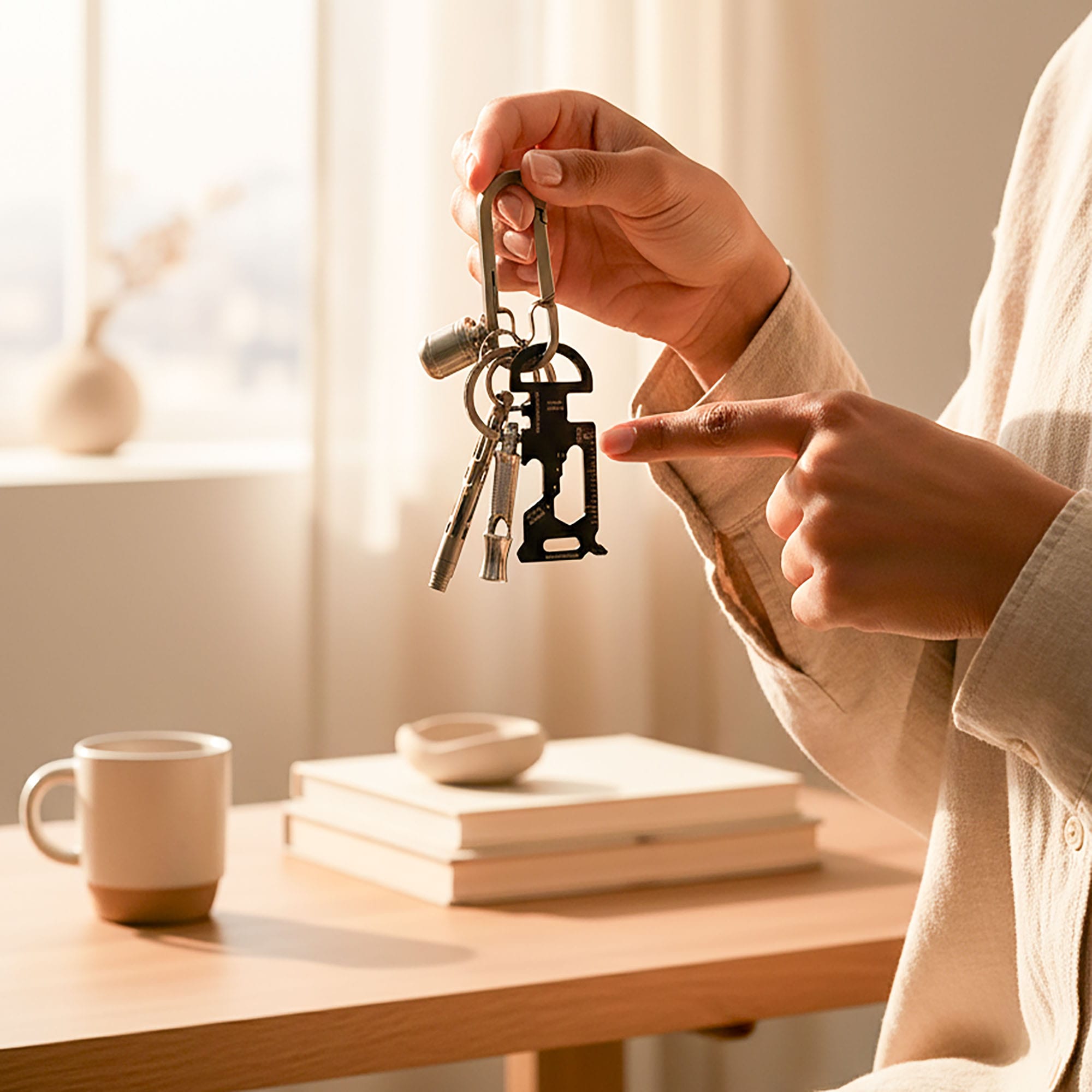 Brelok EDC marki Vitolog to inteligentne rozwiązanie, które mieści w sobie funkcjonalność ośmiu narzędzi w formie lekkiej i stylowej karty przypiętej do kluczy. Zapomnij o improwizacji – z tym kieszonkowym wsparciem każda niespodziewana usterka staje się jedynie drobnym zadaniem do wykonania.