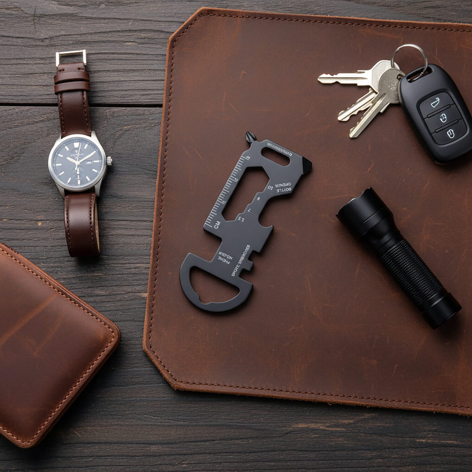 Brelok EDC Multitool 8w1 – Kompaktowa Karta Przetrwania i Niezbędnik Survivalowy