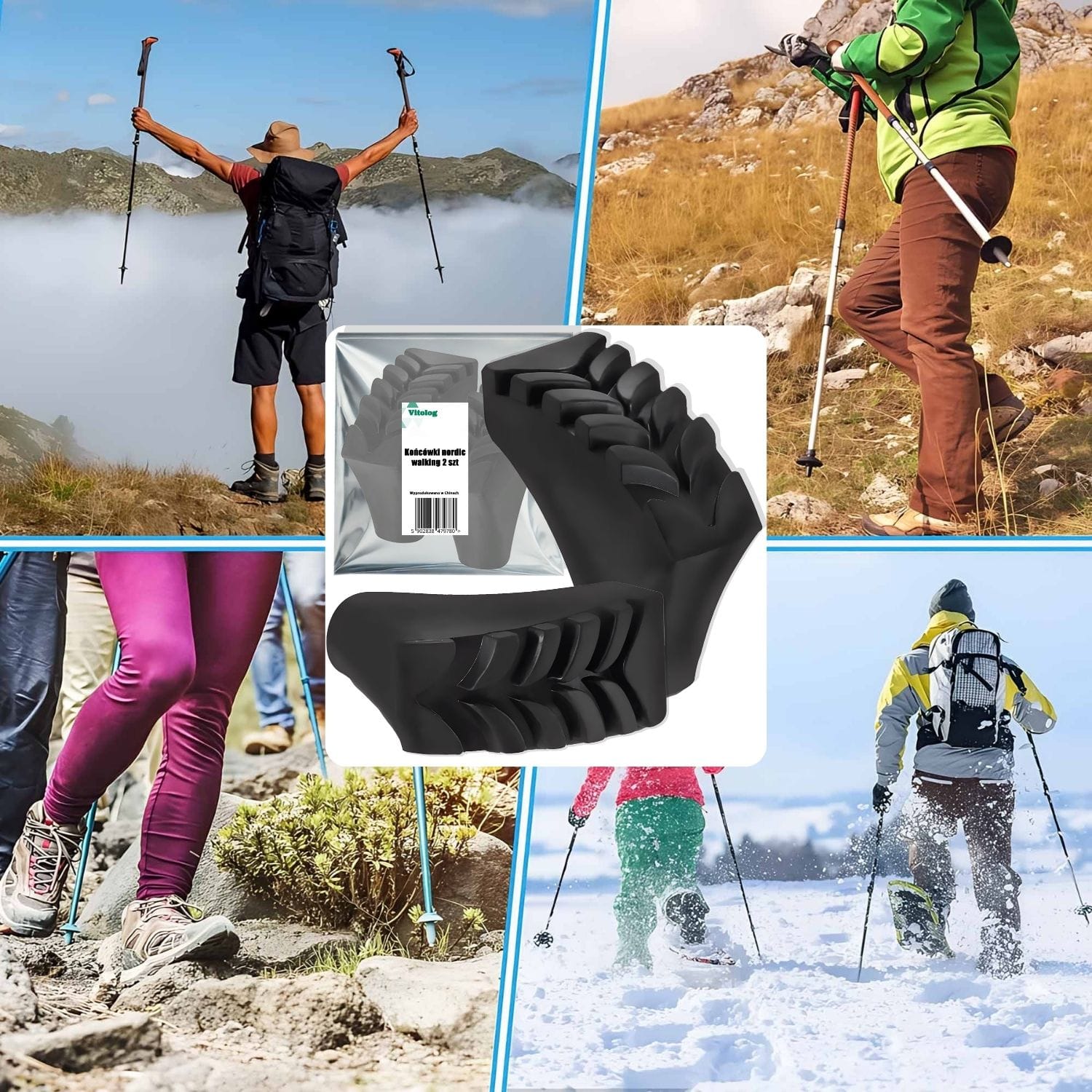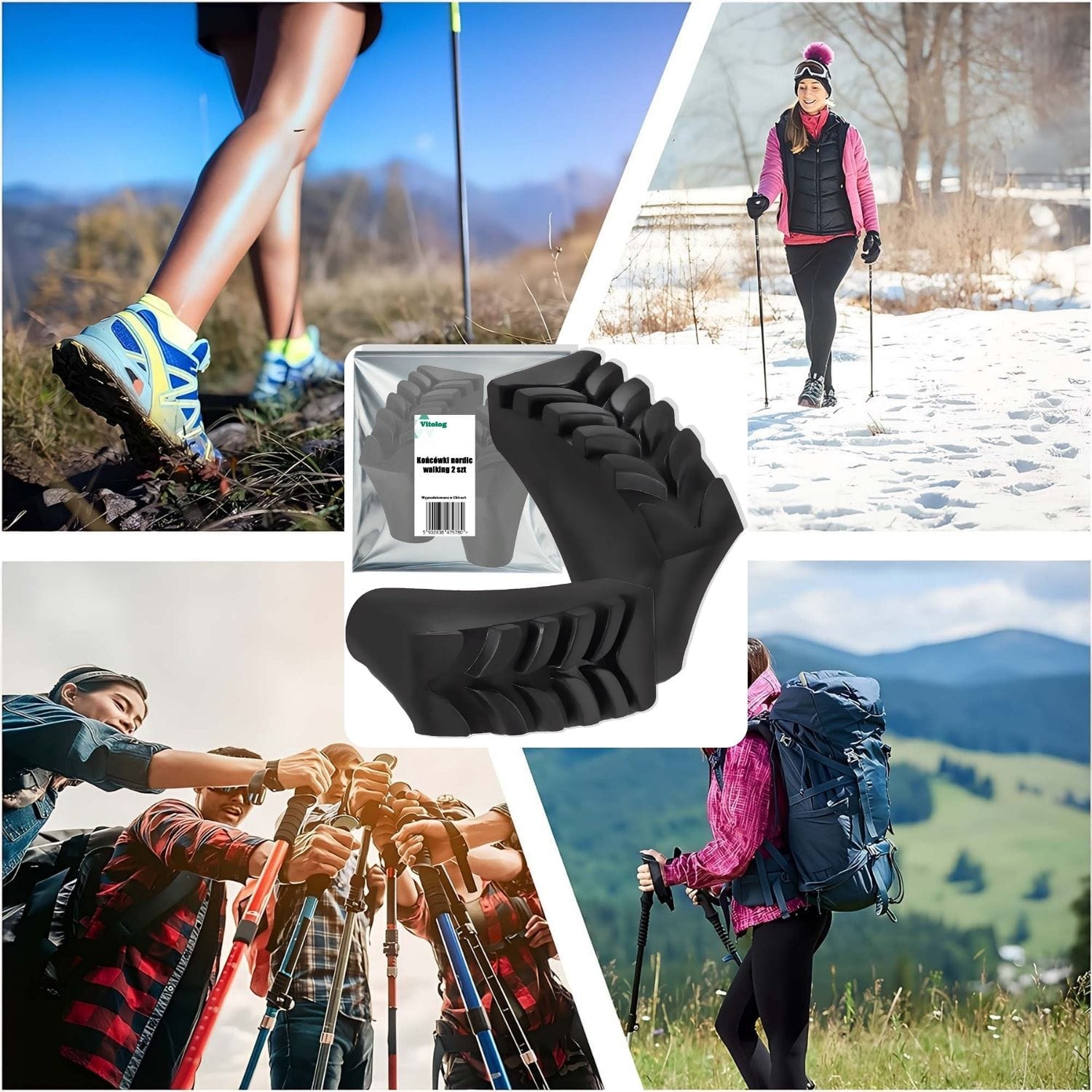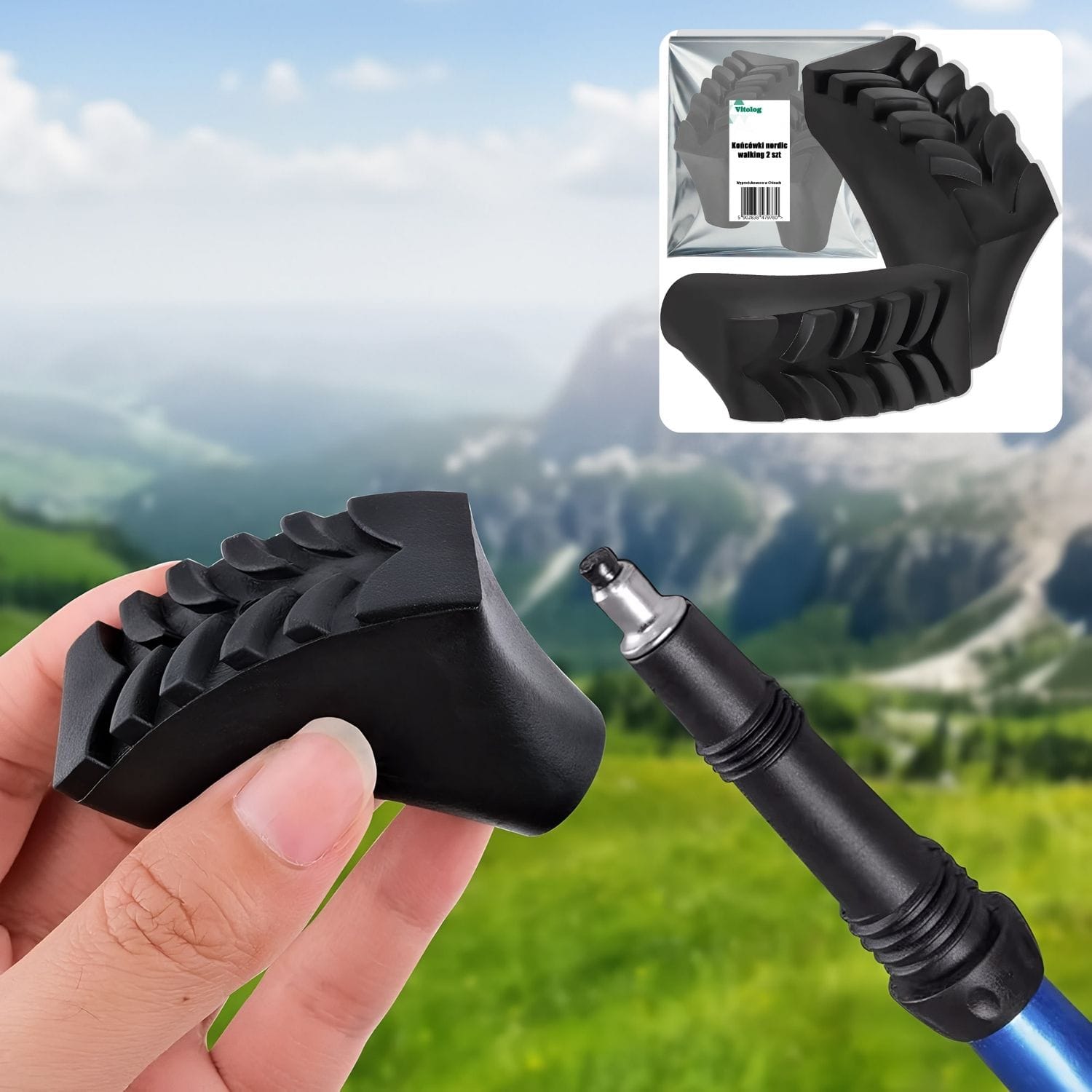 Końcówki do kijków trekkingowych i nordic walking. Pomagają zabezpieczać końcówki kijów przed ścieraniem oraz zapobiegają ich ugrzęźnięciu w ziemi, zapewniając pełne bezpieczeństwo w czasie marszu.