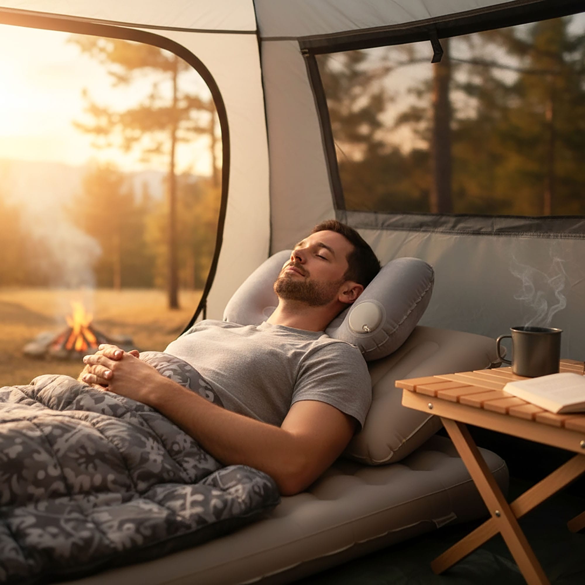 - Poduszka pod namiot i na kemping: Zapewnia izolację od twardego podłoża i komfort zbliżony do domowej sypialni.