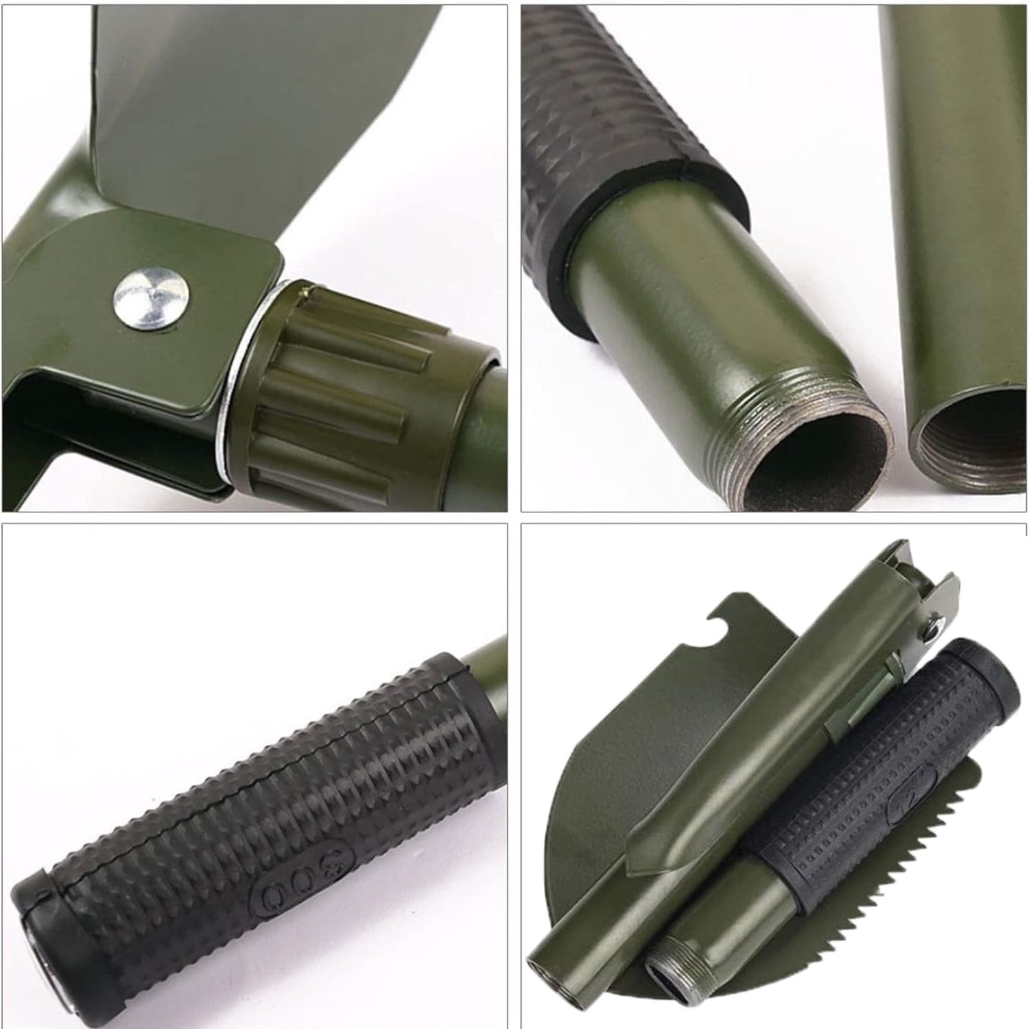 • Wielofunkcyjna – wiele funkcji w jednym urządzeniu. Za pomocą składanej saperki możesz wykorzystać jej pełne zastosowanie. Zawiera w sobie łopatę, kilof, piłkę oraz otwieracz do butelek.