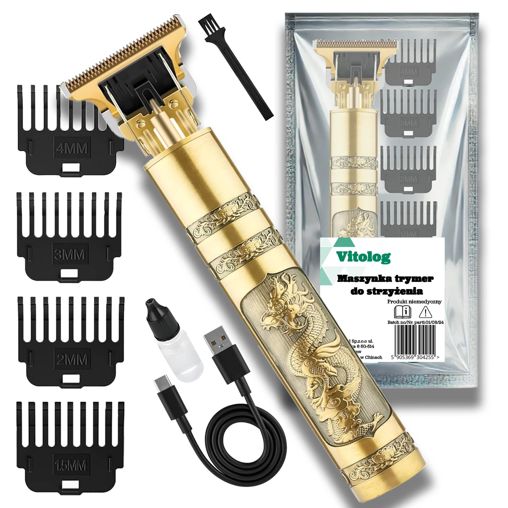 | Załączone wyposażenie | Kabel usb, Maszynka, Nasadki grzebieniowe: 4 sztuki, Olej do konserwacji, Szczoteczka do czyszczenia |