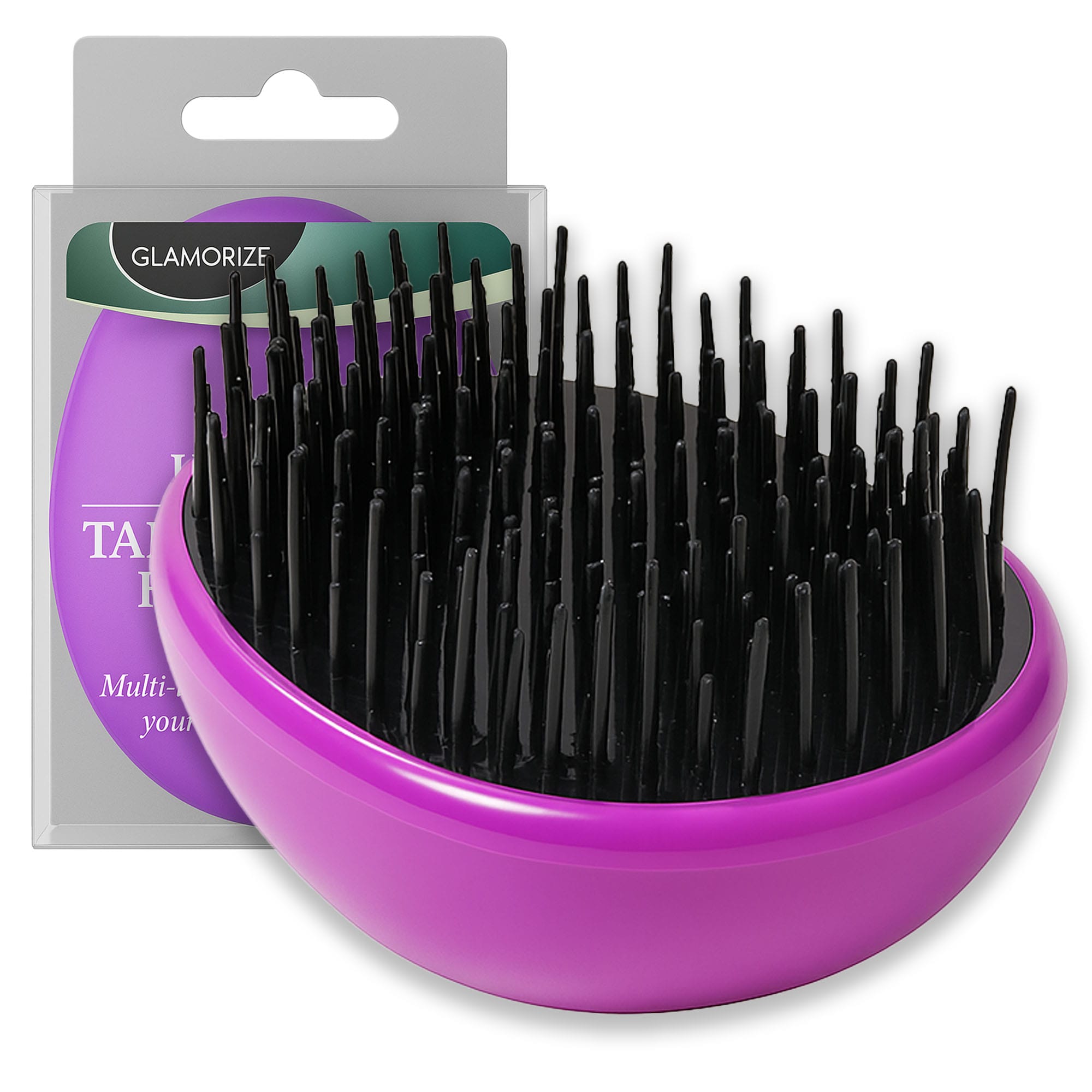Owalna szczotka do włosów z elastycznymi ząbkami fioletowa
