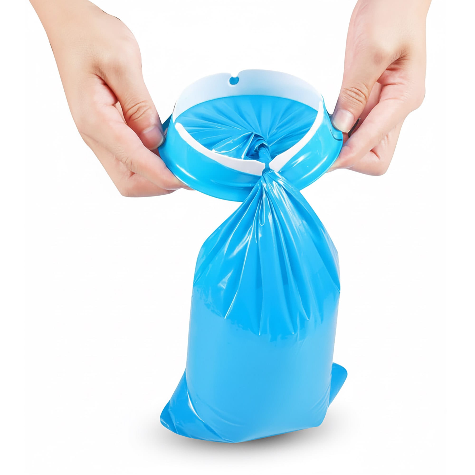 - Intuicyjny system zamykania: Po użyciu worek można błyskawicznie zabezpieczyć, skręcając folię i zaczepiając ją o specjalne nacięcie w kołnierzu. Skutecznie blokuje to nieprzyjemne zapachy i chroni przed wyciekiem podczas transportu do kosza.