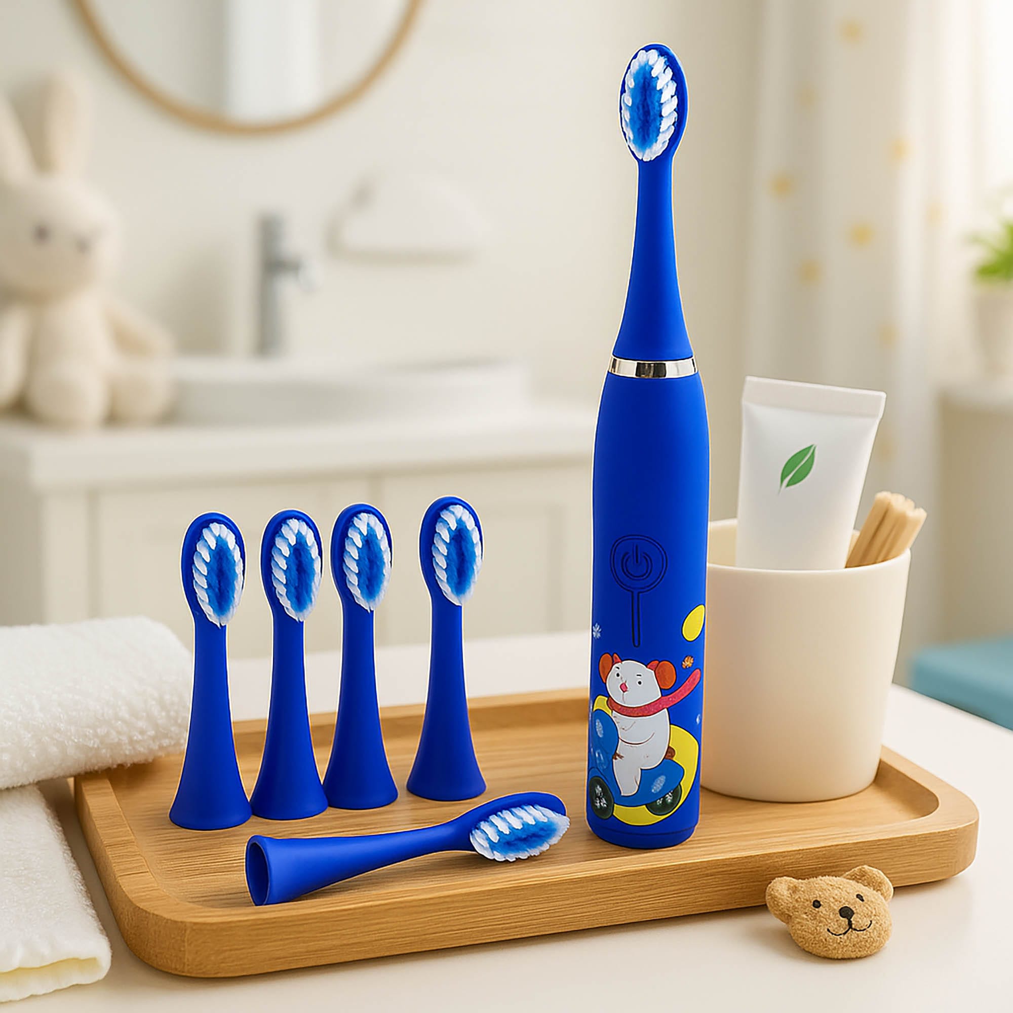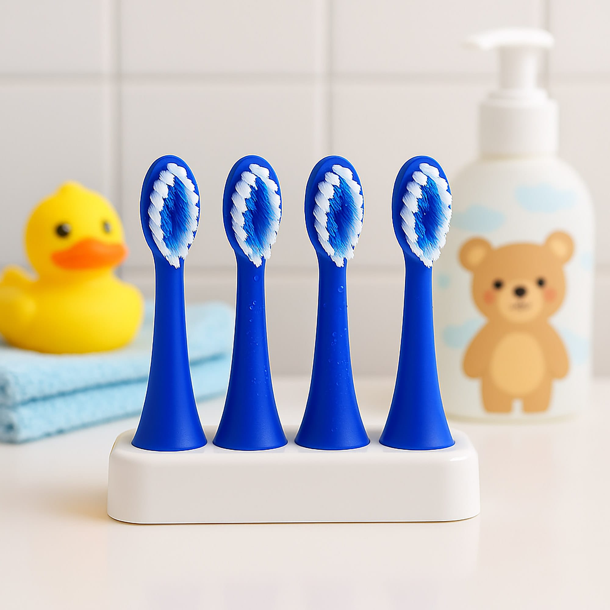 Wymienne końcówki do szczoteczki sonicznej dla dzieci to doskonały wybór dla każdego rodzica dbającego o zdrowie jamy ustnej swojego dziecka. Zestaw zawiera 4 sztuki końcówek w eleganckim granatowym kolorze, wykonanych z trwałego i bezpiecznego materiału ABS. Model został zaprojektowany z myślą o najmłodszych użytkownikach, zapewniając im maksymalny komfort oraz efektywność podczas codziennej pielęgnacji zębów.