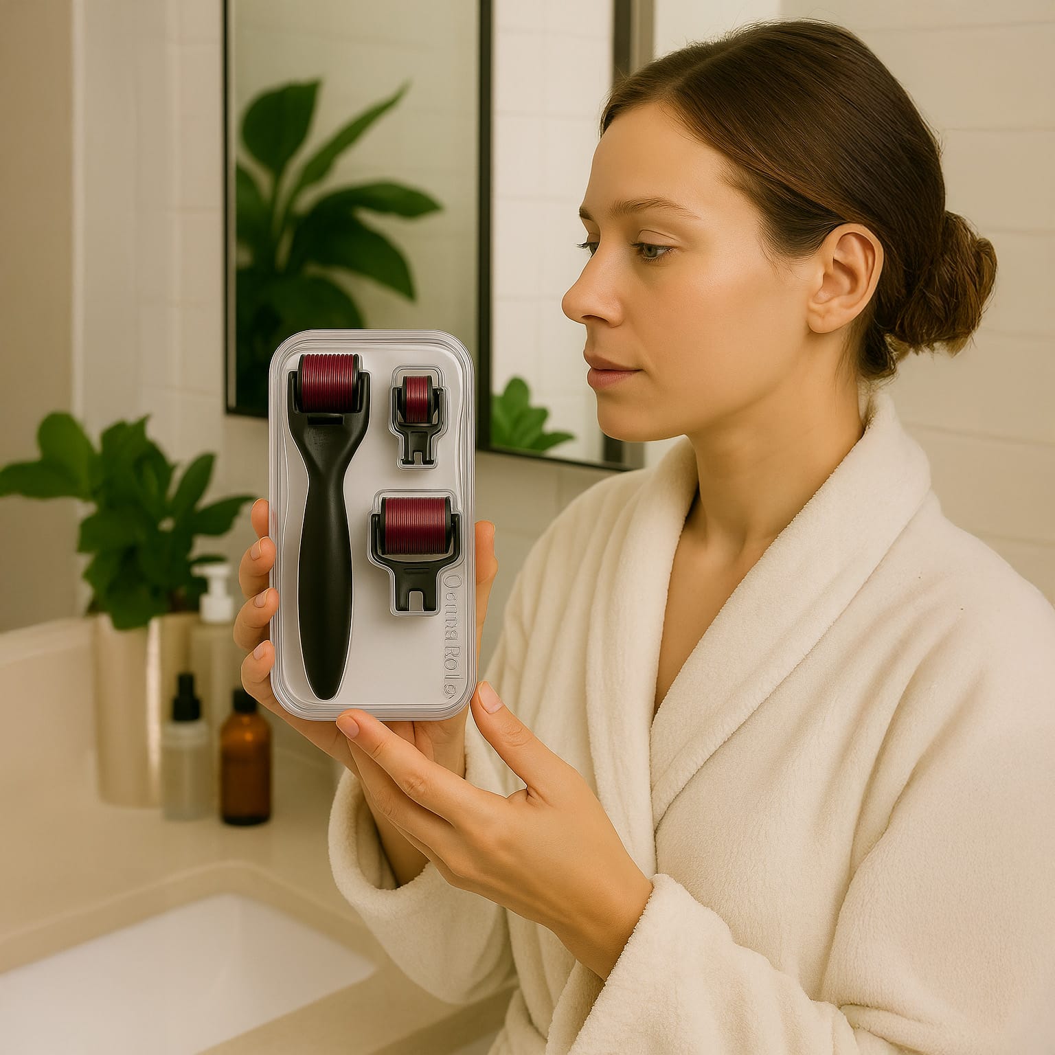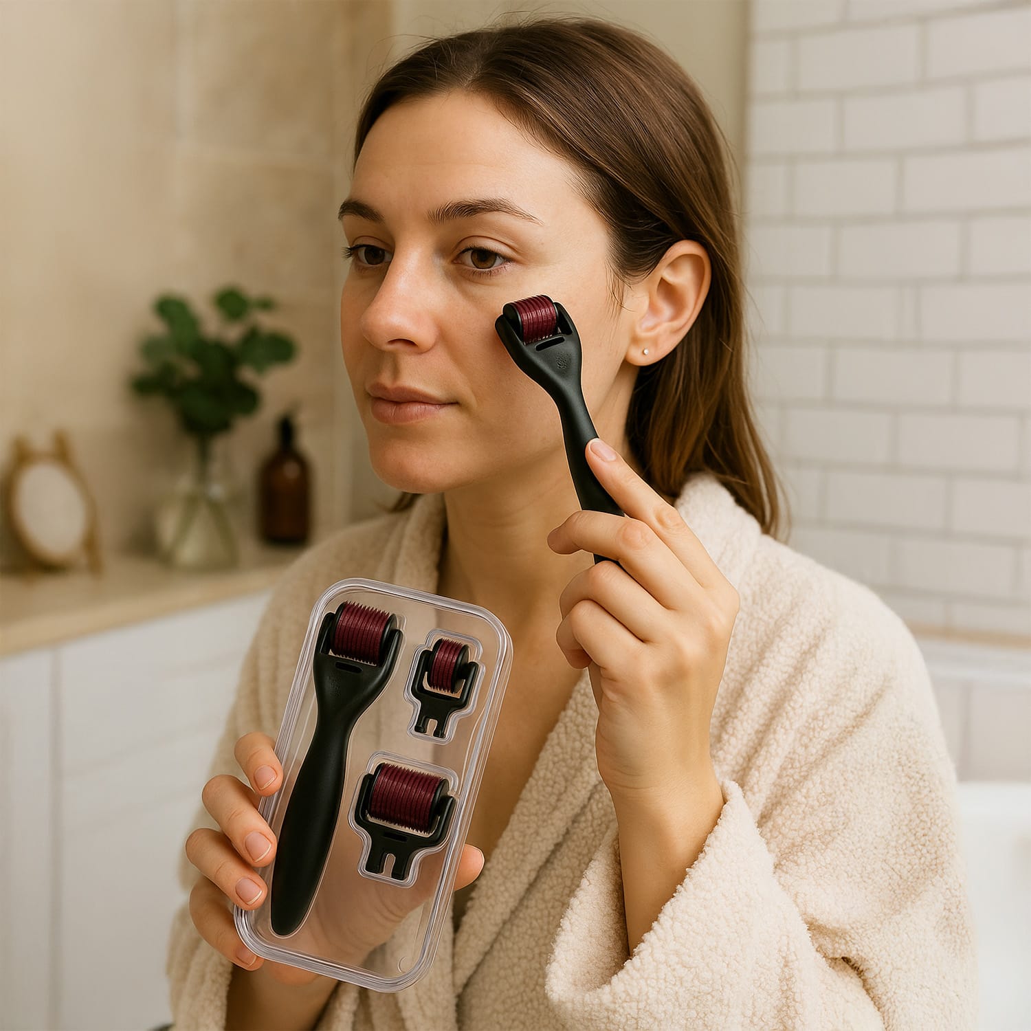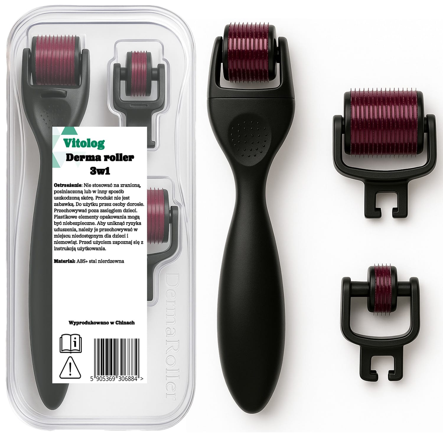 Derma Roller 3w1 to profesjonalny zestaw do mikronakłuwania skóry, który pozwala na uzyskanie spektakularnych efektów w walce z niedoskonałościami cery.