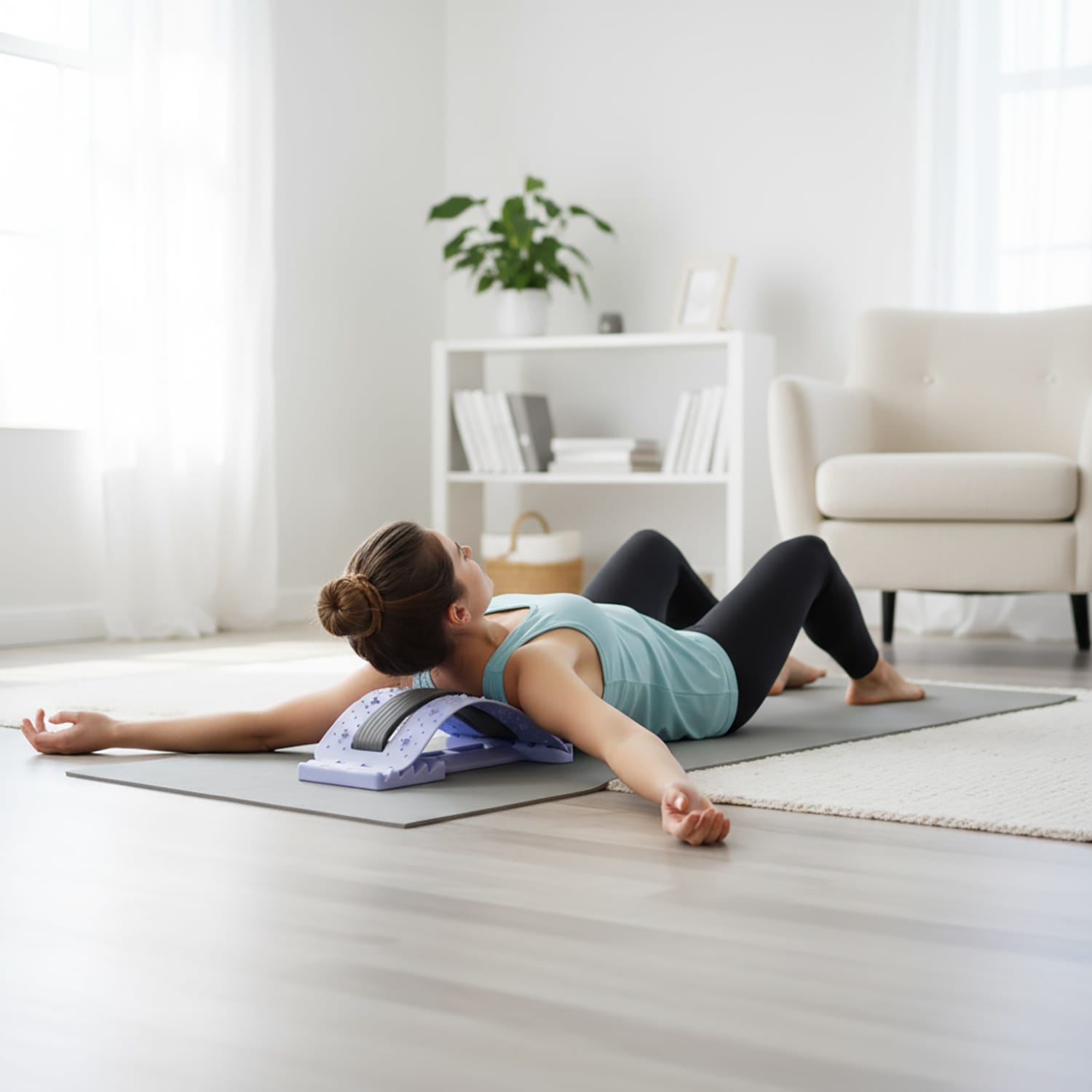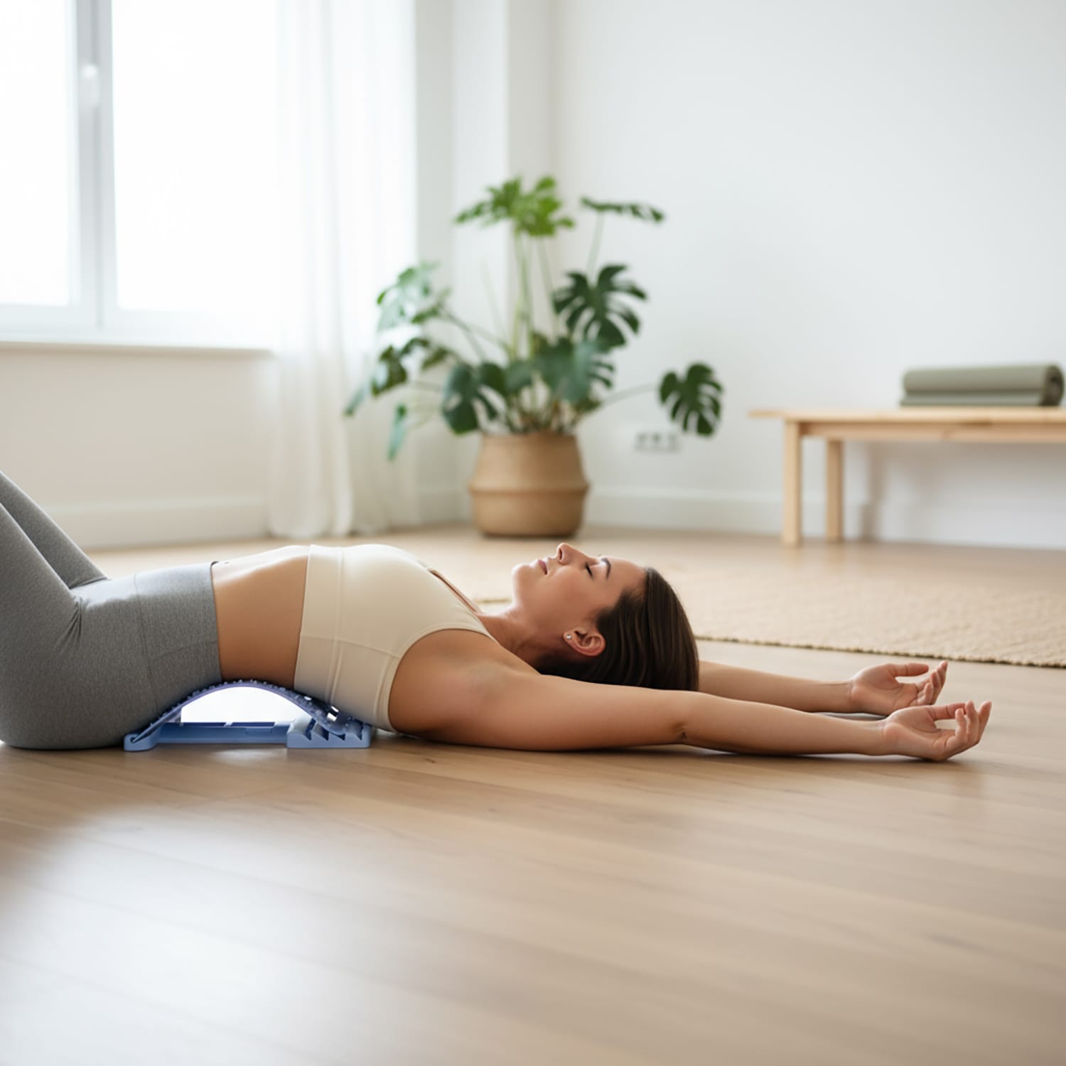 - Wspomaga powrót do naturalnej krzywizny kręgosłupa.