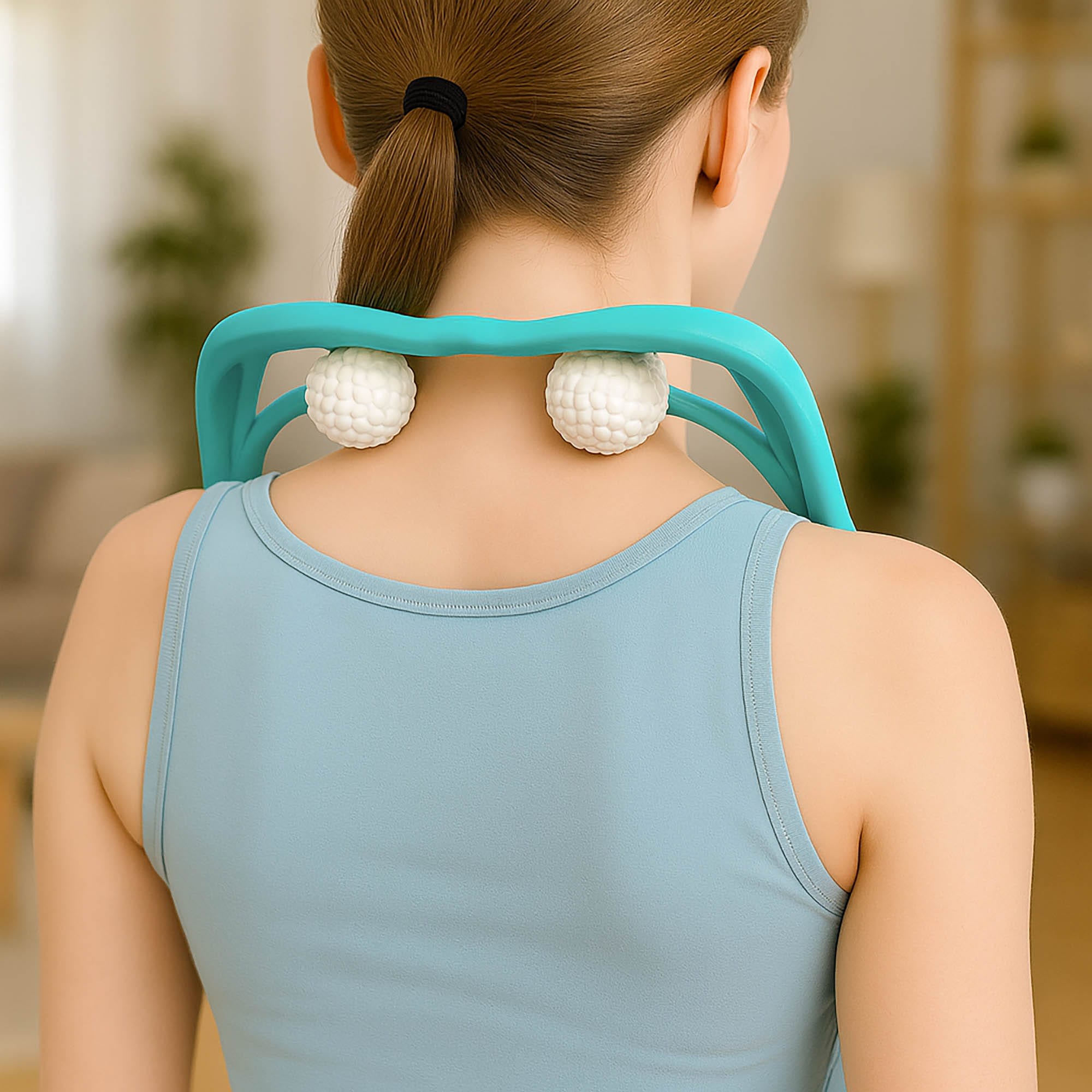 Uniwersalne Zastosowanie: Choć masażer idealnie sprawdza się do masażu karku i szyi, jego konstrukcja pozwala na efektywne rozluźnianie mięśni pleców, ramion, ud, łydek, a nawet stóp.