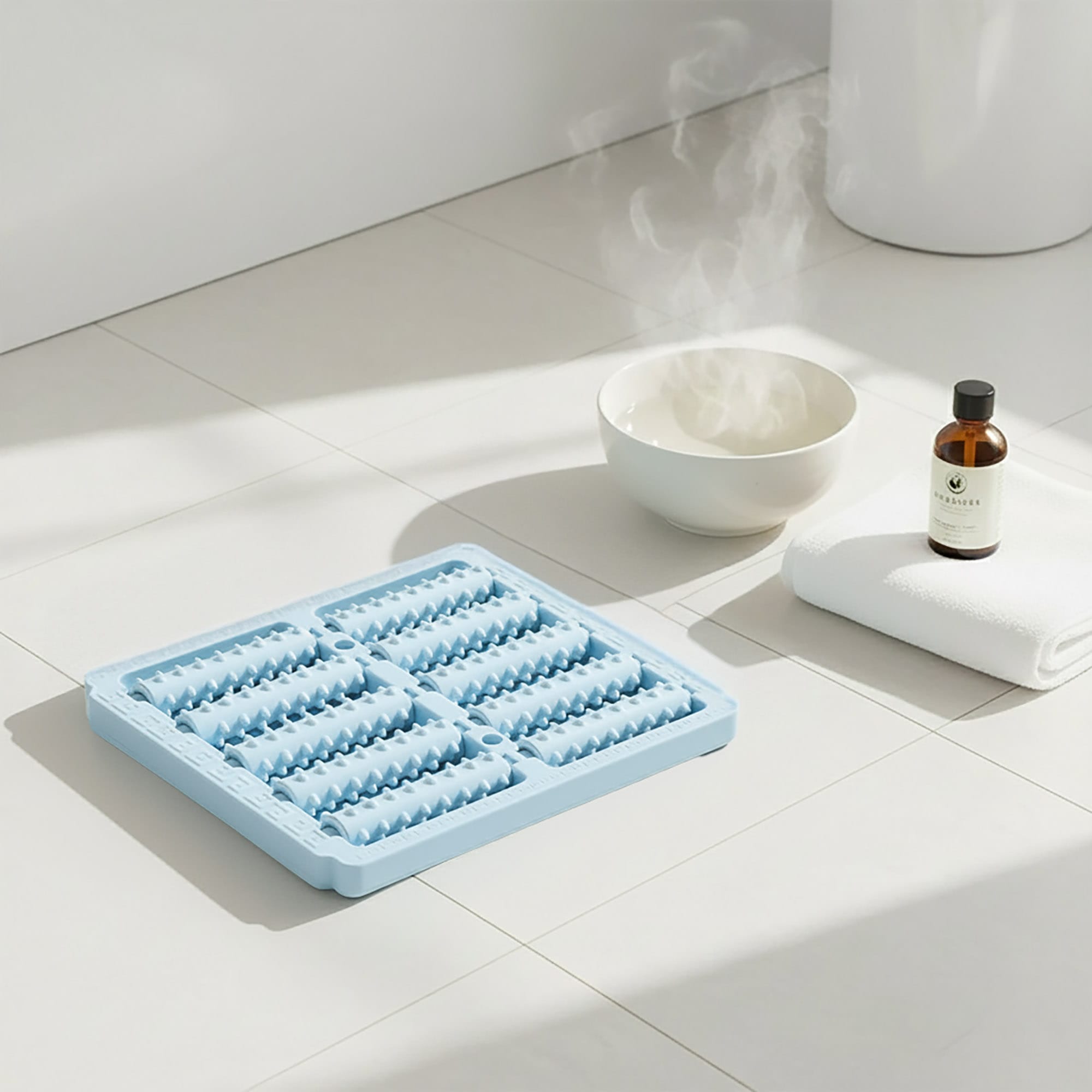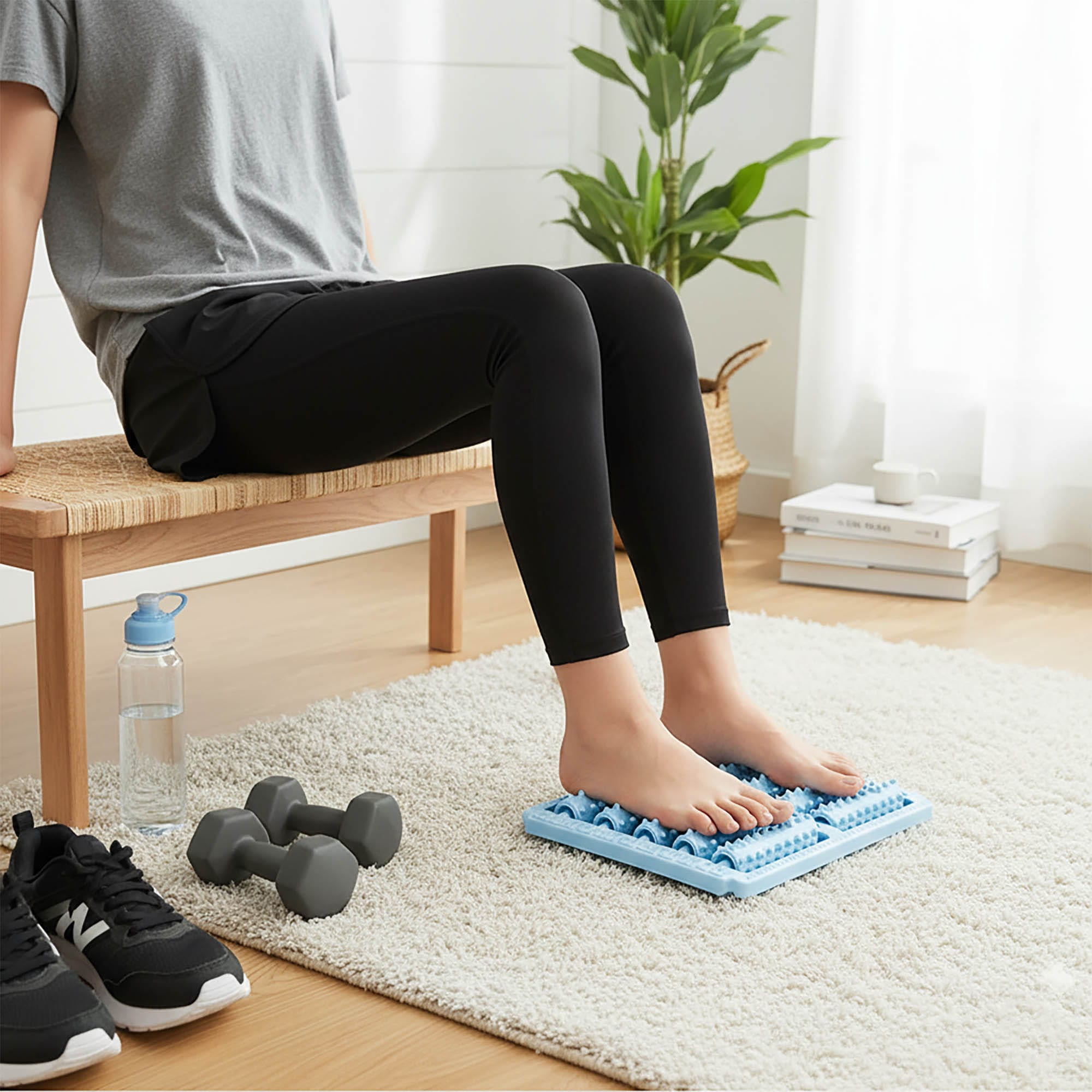 - Głęboka Akupresura i Relaksacja: Pięć rzędów rolek masujących (łącznie 10 rolek) działa na kluczowe punkty na podeszwie stopy, pomagając rozluźnić napięcie mięśniowe i poprawić komfort.
