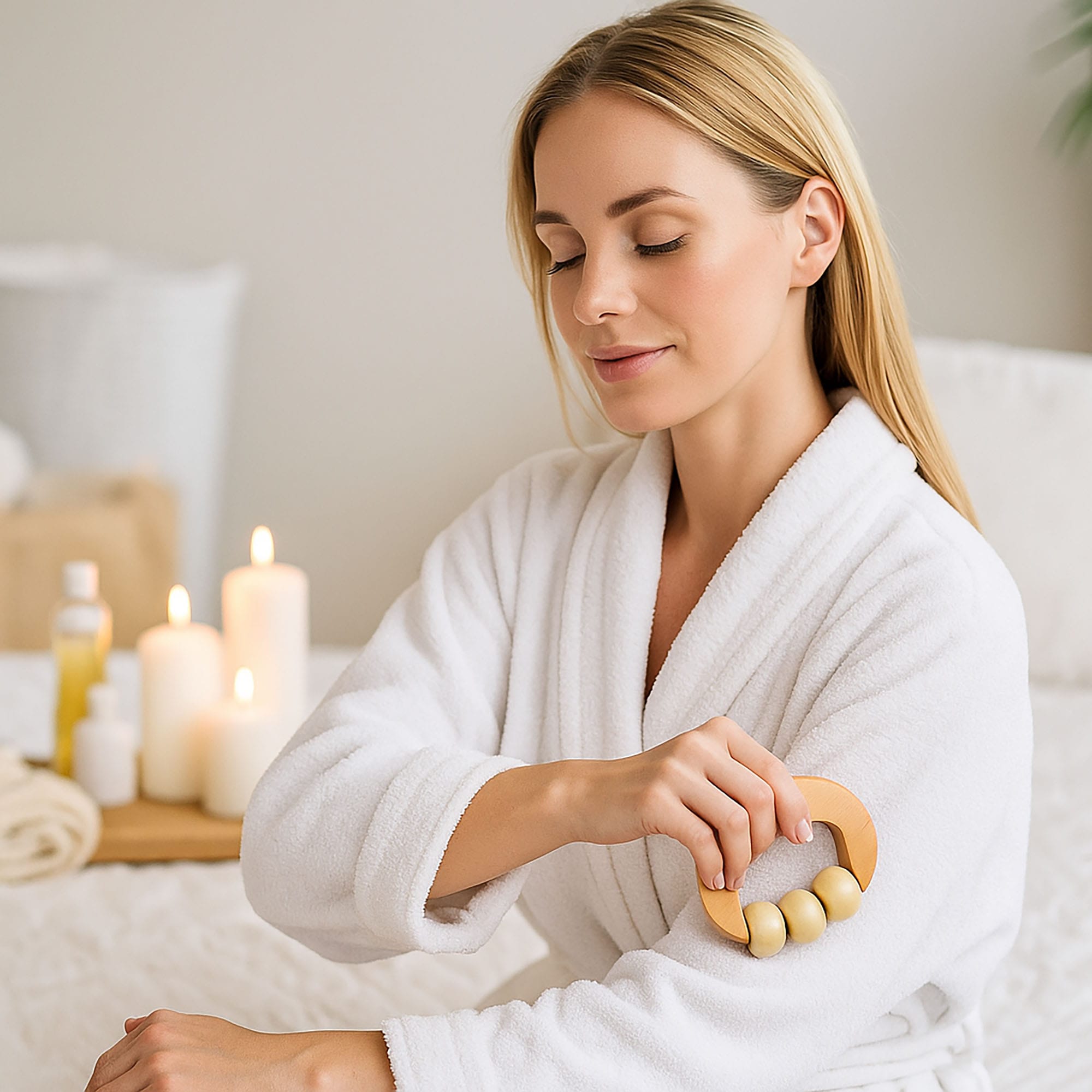 Drewniana rączka została zaprojektowana z myślą o maksymalnym komforcie użytkowania, co sprawia, że masażer doskonale leży w dłoni i umożliwia precyzyjne wykonanie masażu bez zbędnego wysiłku. Aby uzyskać najlepsze rezultaty, masaż można wykonywać na sucho lub z dodatkiem ulubionego olejku czy kremu do masażu, co dodatkowo potęguje uczucie relaksu i odprężenia.
