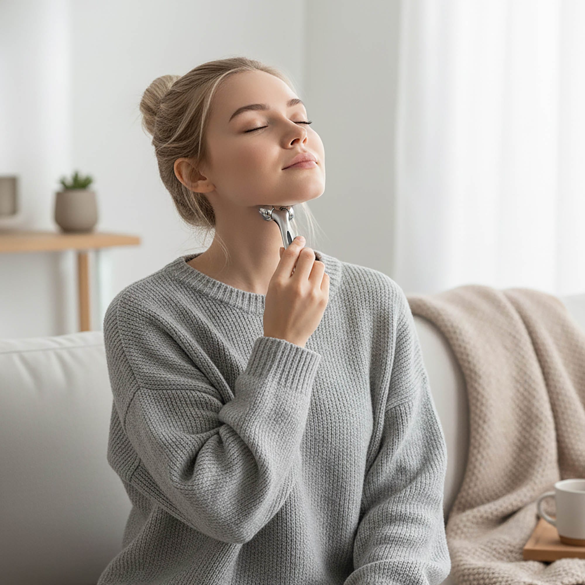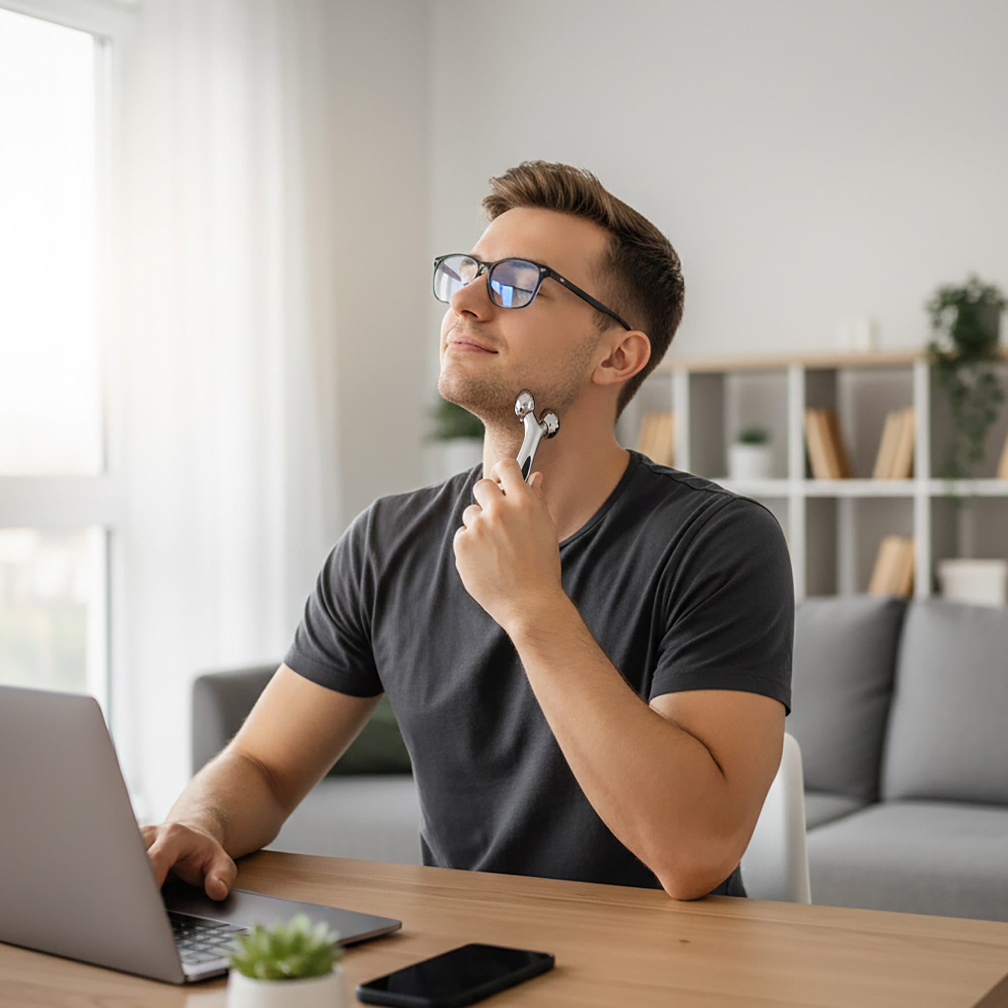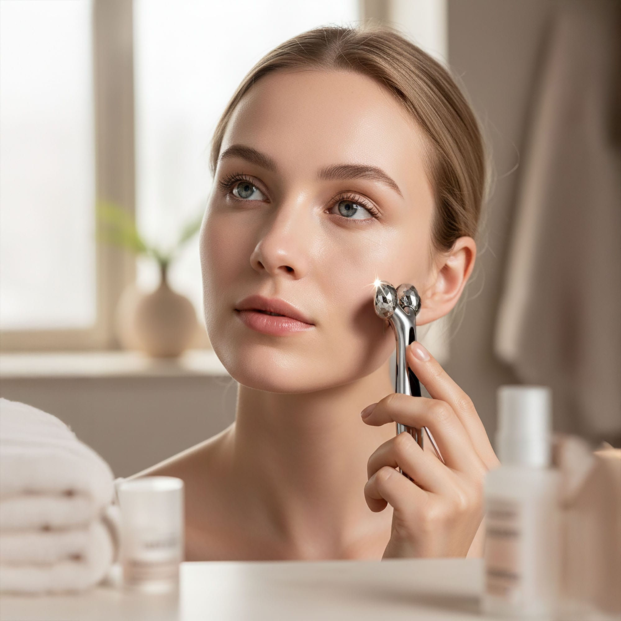- Redukcja Zmarszczek i Anti-Aging: Delikatny masaż w połączeniu z rolowaniem stymulują produkcję kolagenu i elastyny, pomagając wygładzić zmarszczki wokół oczu, ust, czoła i szyi.