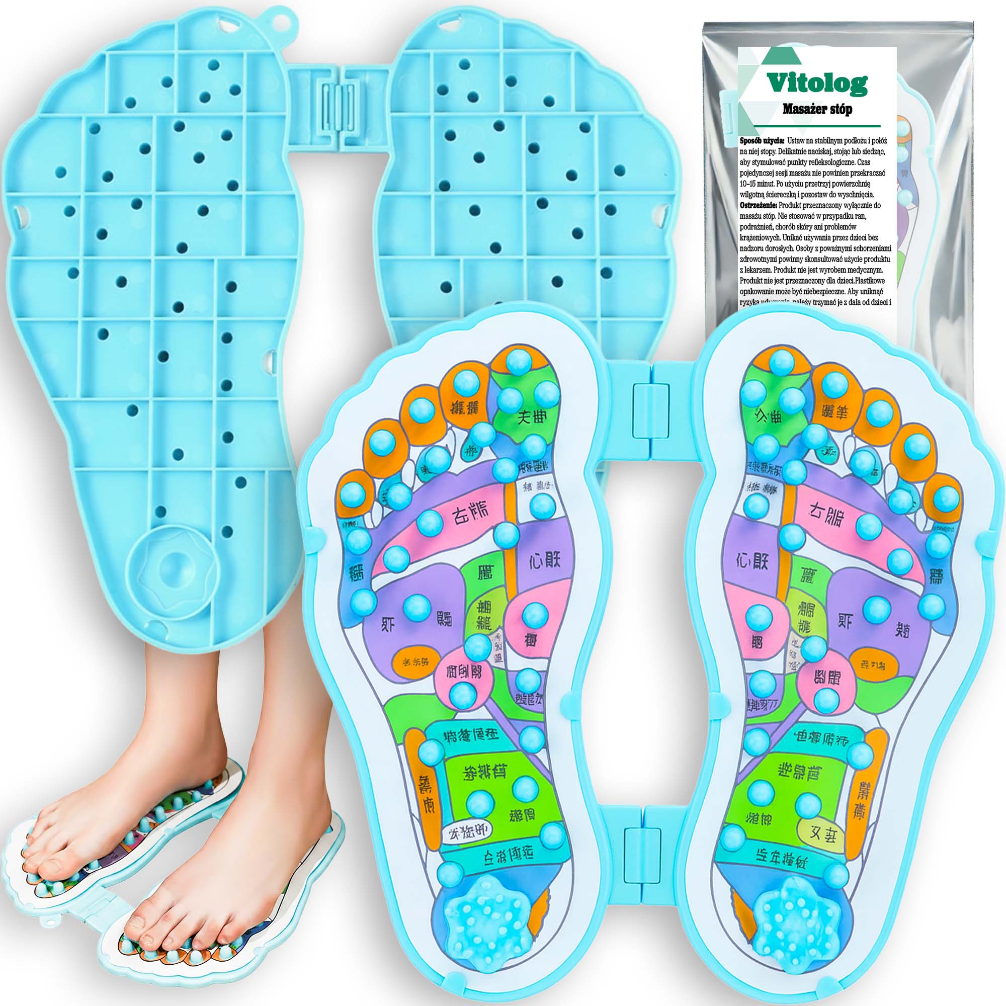 - Cechy dodatkowe: Składana konstrukcja, mapa refleksologiczna stóp.