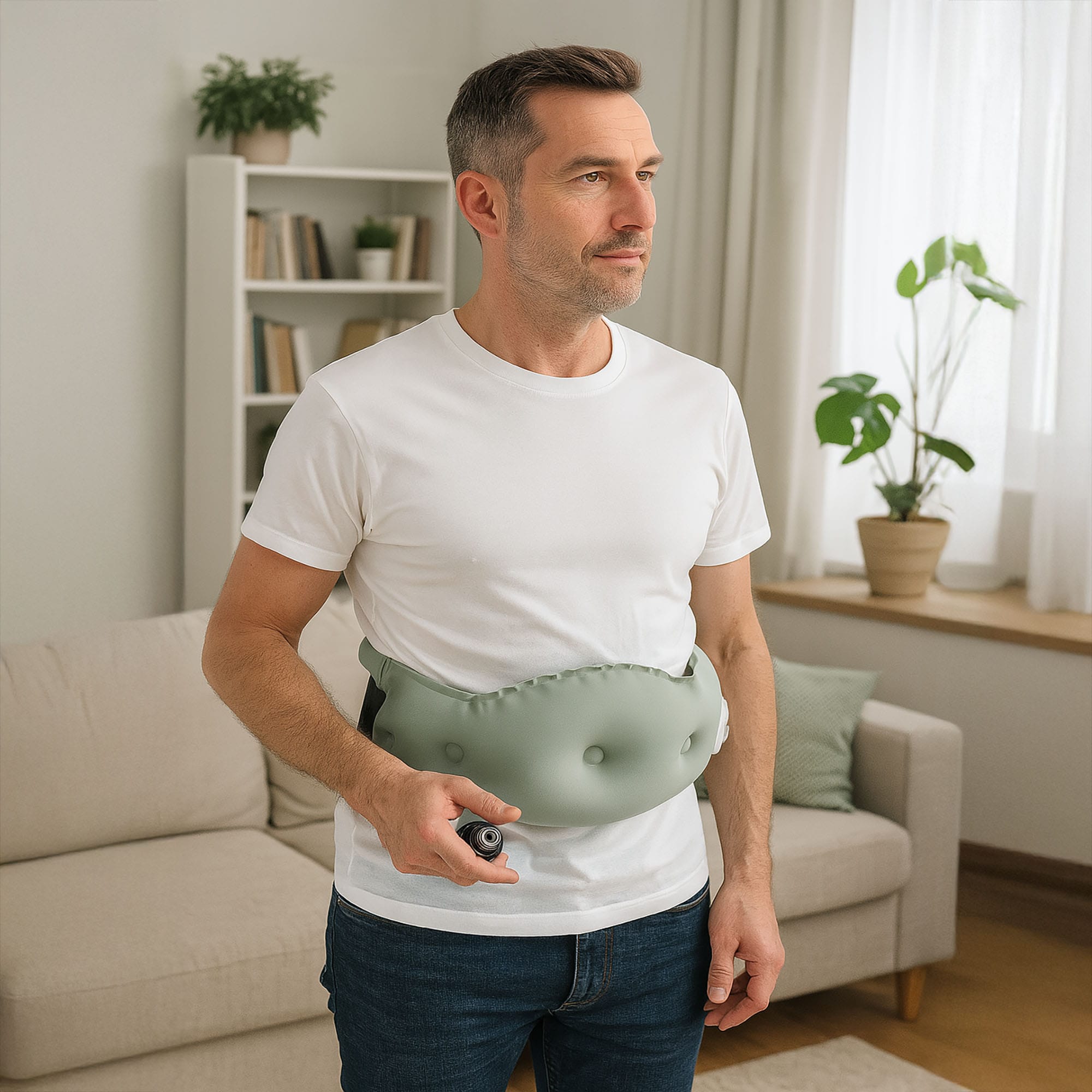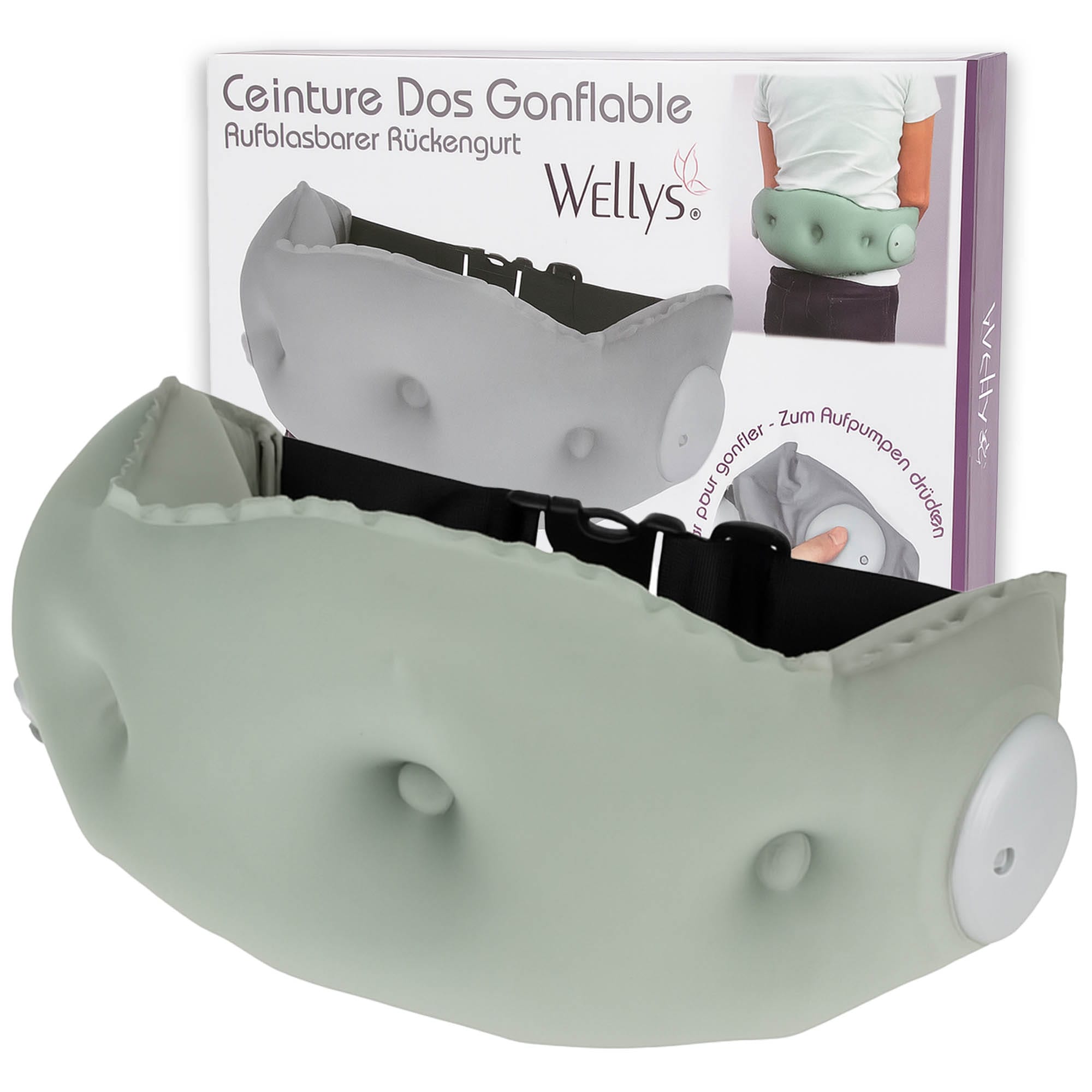 Wsparcie: Poprzez napompowanie, pas zapewnia indywidualnie regulowane podparcie dla odcinka lędźwiowego.