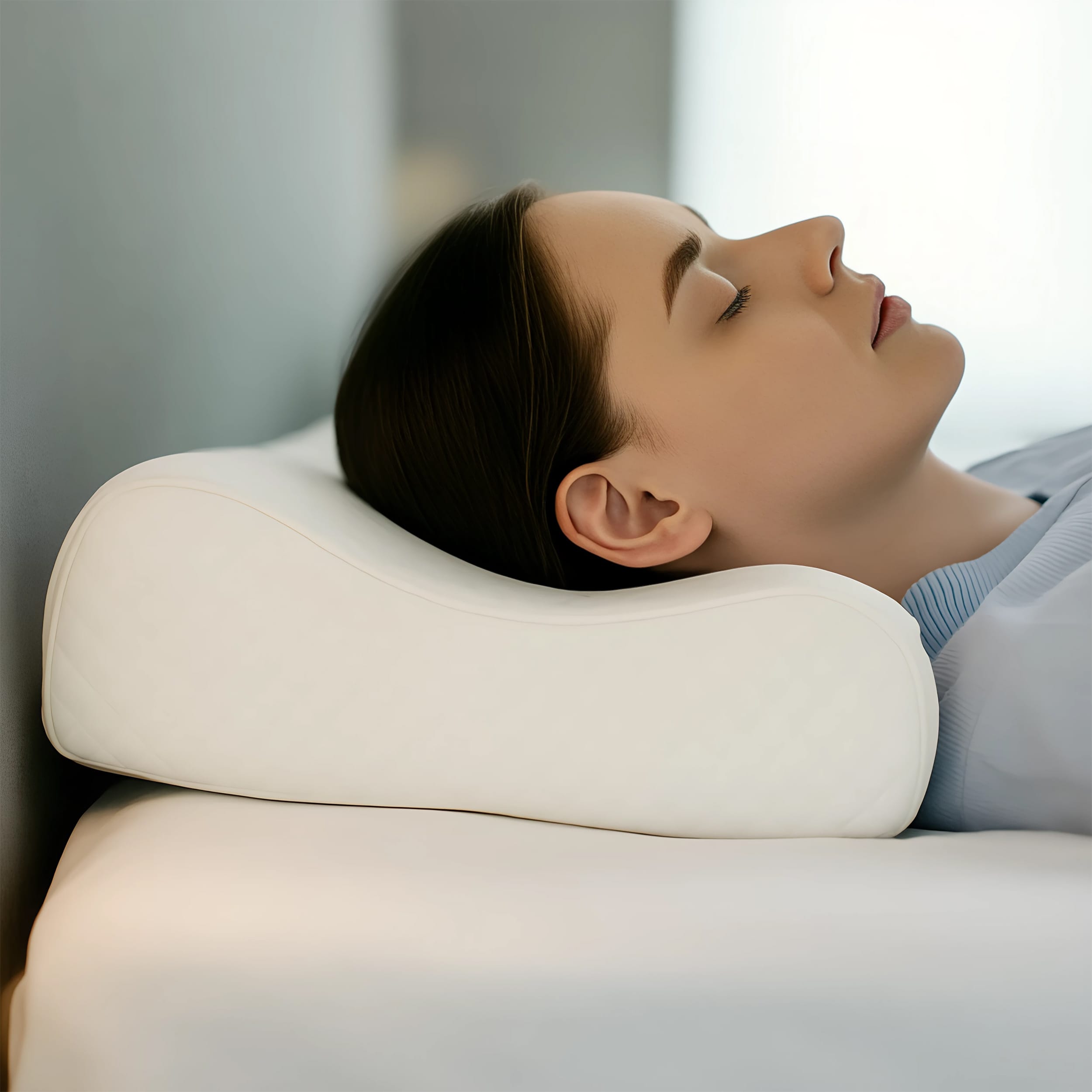 Dzięki swojej profilowanej konstrukcji poduszka pomaga utrzymać naturalne krzywizny kręgosłupa, zapobiegając bólom i napięciom mięśniowym.