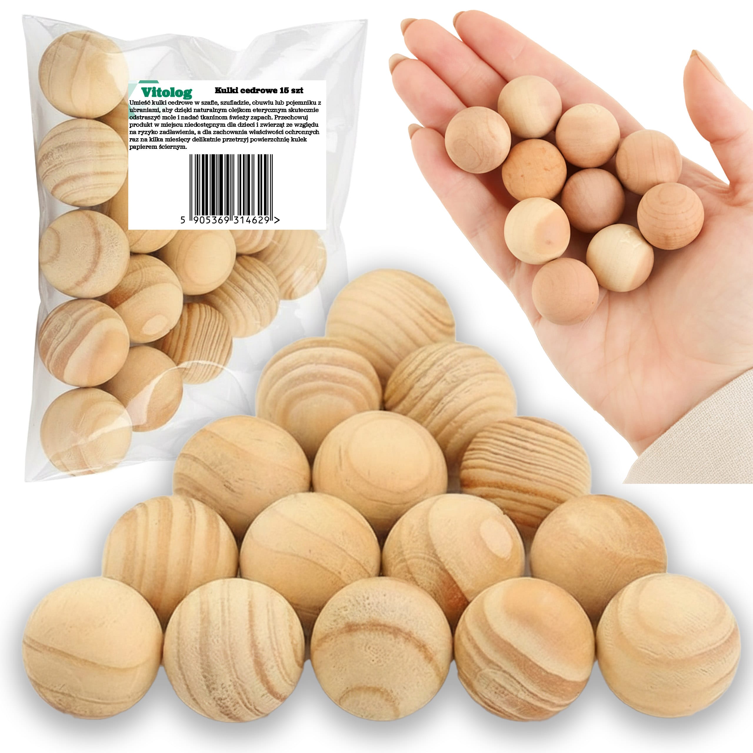 15x Kulki Cedrowe na Mole Odzieżowe – Naturalny Odświeżacz i Odstraszacz Vitolog