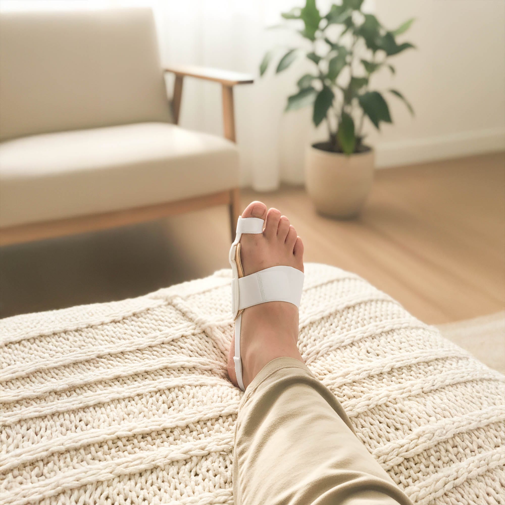 - Skuteczna Korekcja Ortopedyczna: Aparat działa poprzez wywieranie stałego nacisku na duży palec, co pozwala na stopniowe prostowanie deformacji typu Hallux Valgus.