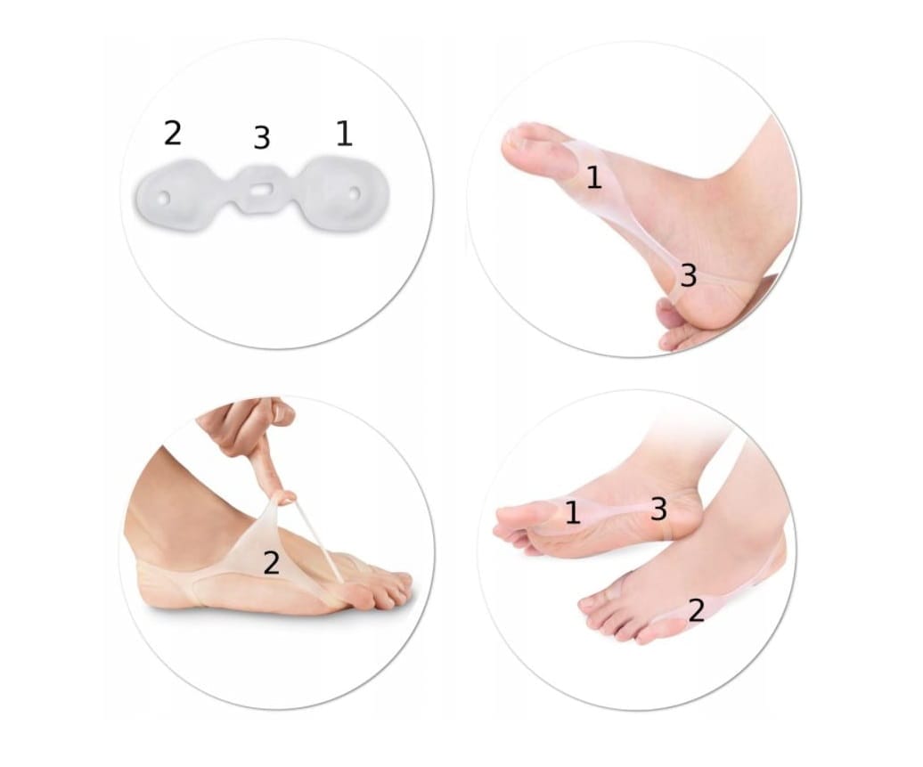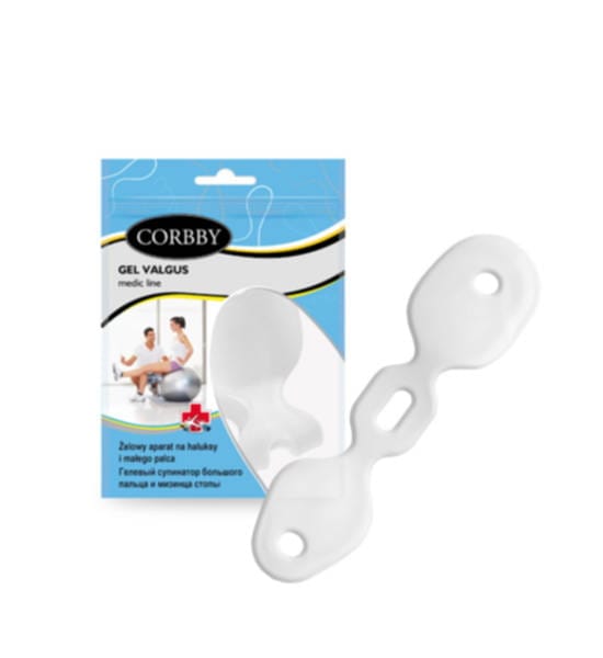 Żelowy aparat korygujący na haluksa i małego palca wspomaga prostowanie palców, zapobiega nachodzeniu się palców na siebie oraz podwijaniu się małego palca. Koryguje deformacje stopy, ustawiając dużego palucha w prawidłowej pozycji.