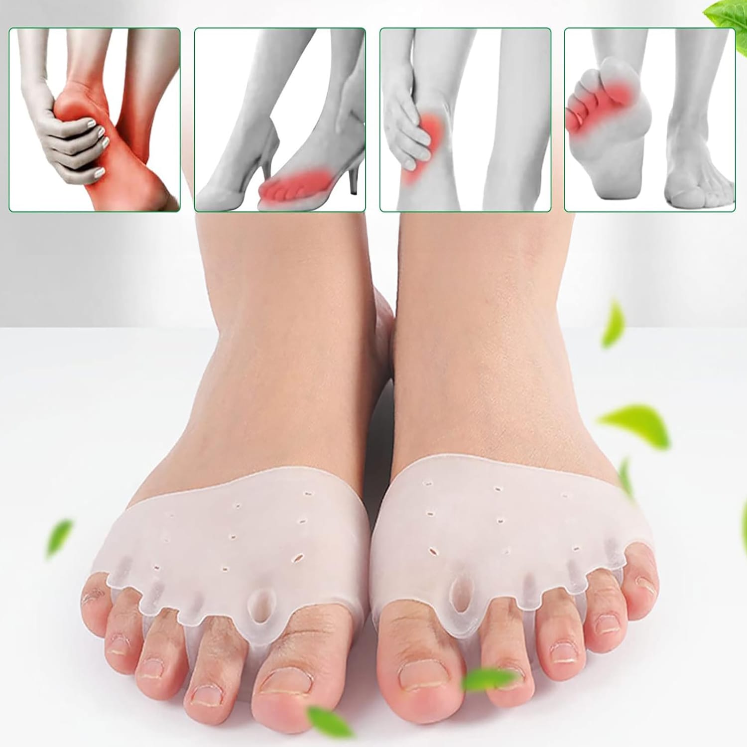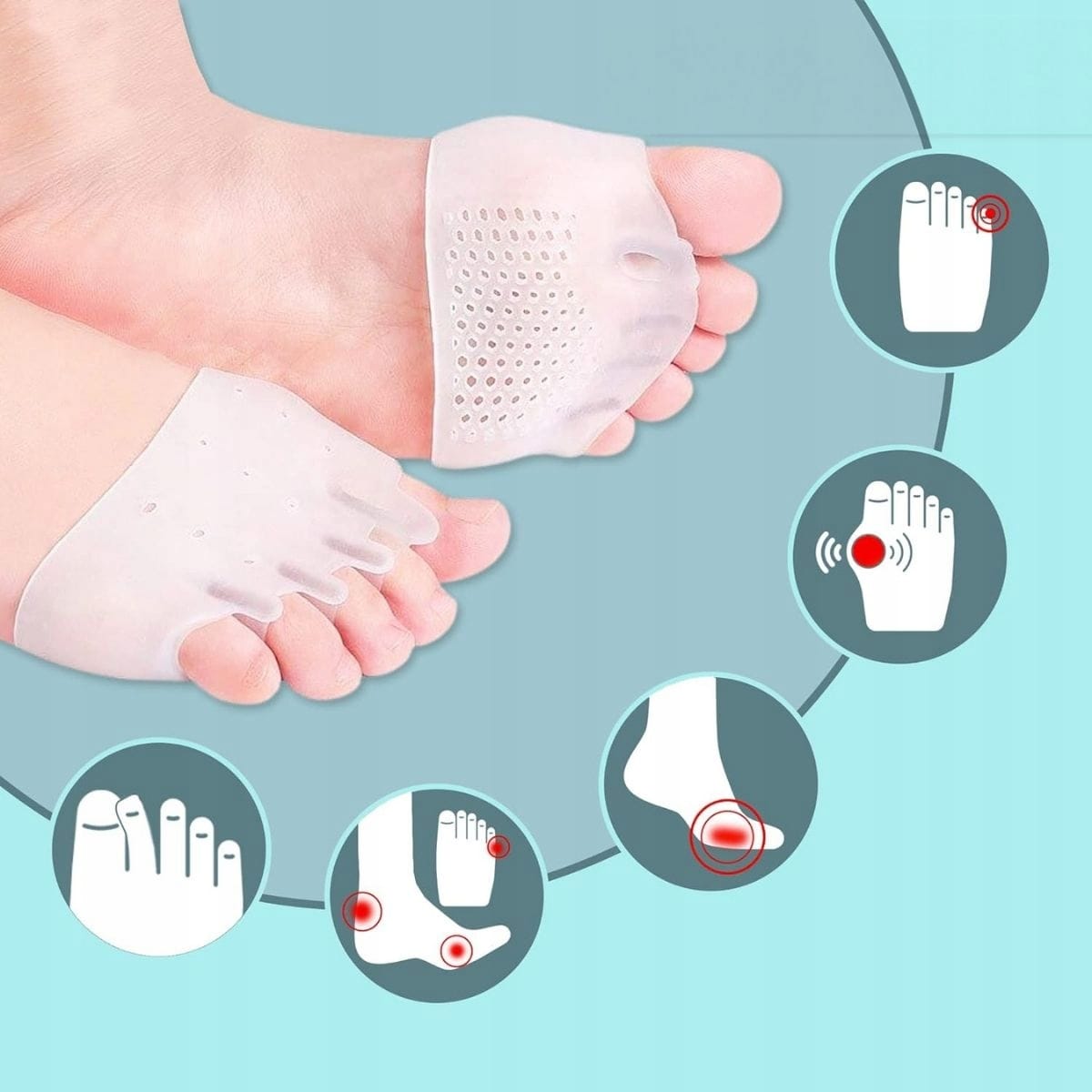 - Zmniejsza ból spowodowany haluksami
