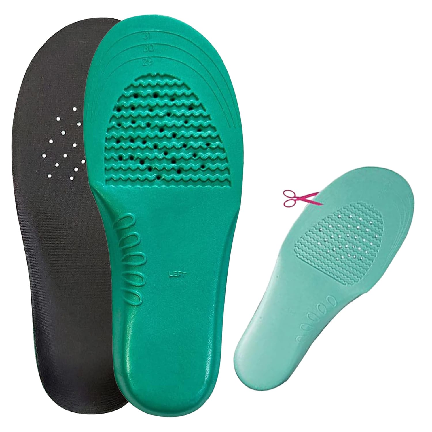 Wkładki posiadają linie do samodzielnego przycięcia, co pozwala na idealne dopasowanie do każdego rodzaju obuwia.