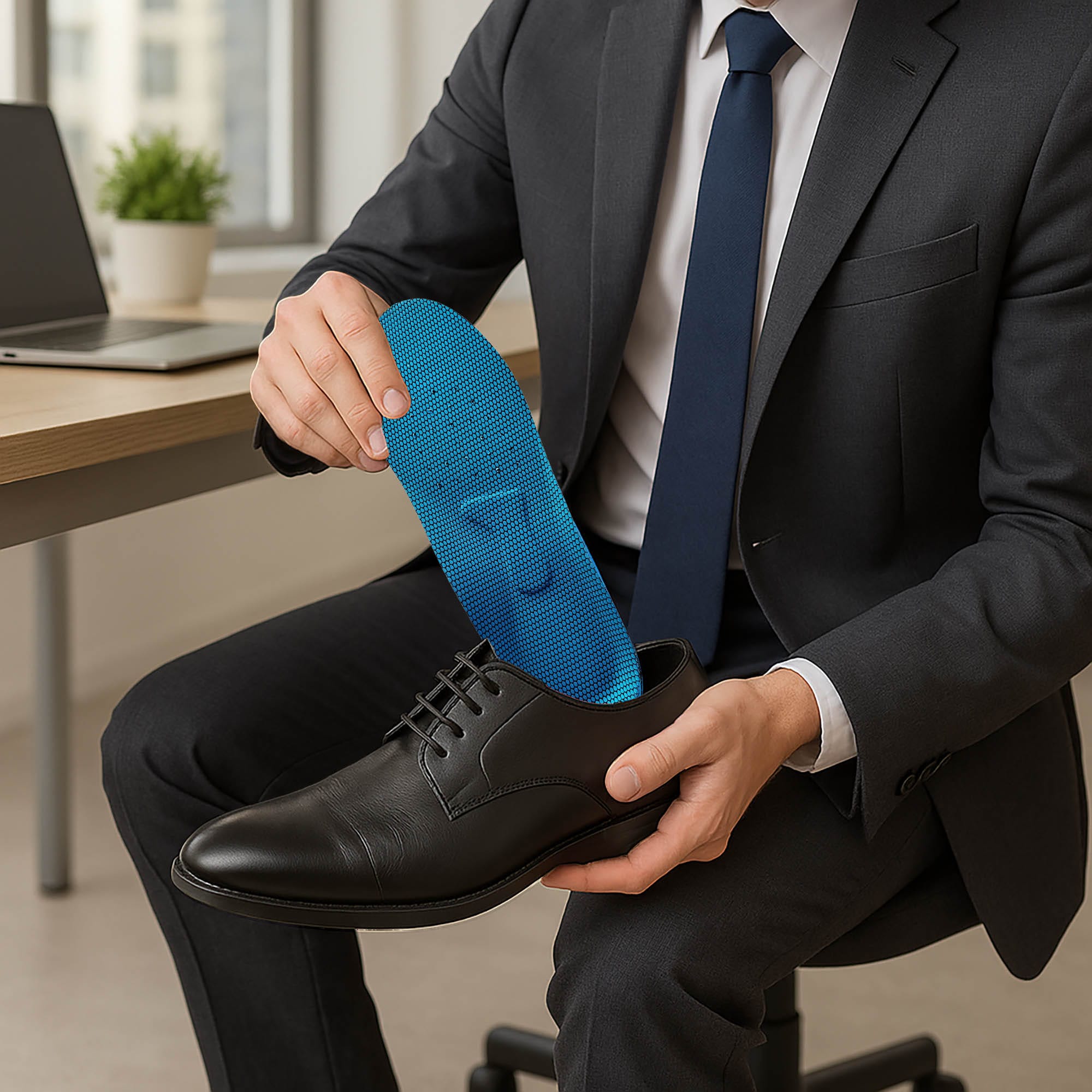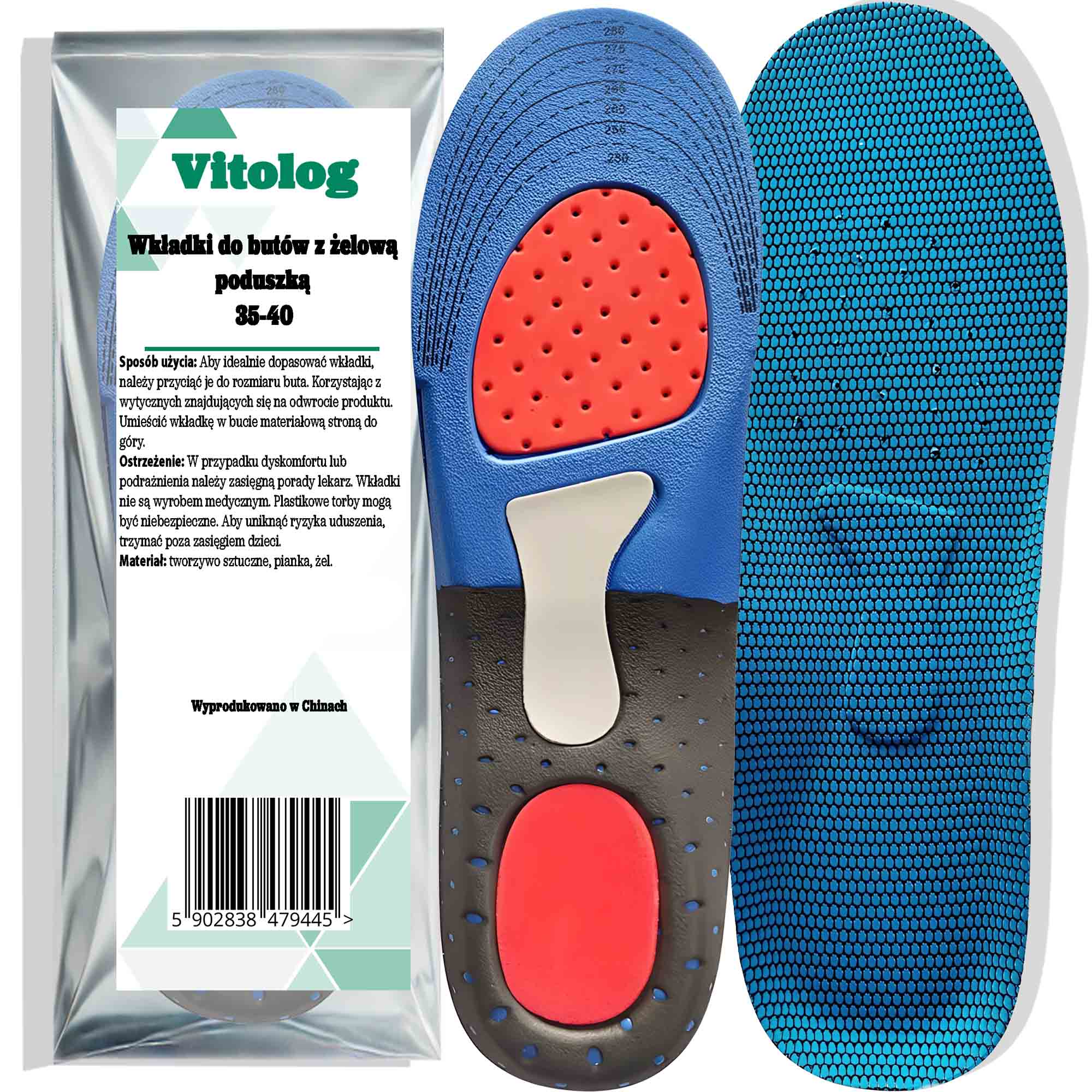 Umieść wkładkę w obuwiu materiałową powierzchnią do stopy. W przypadku zawilgocenia wyjmij i wysusz w temperaturze pokojowej. Dla zachowania właściwej higieny wymieniaj wkładki co 6-8 tygodni.