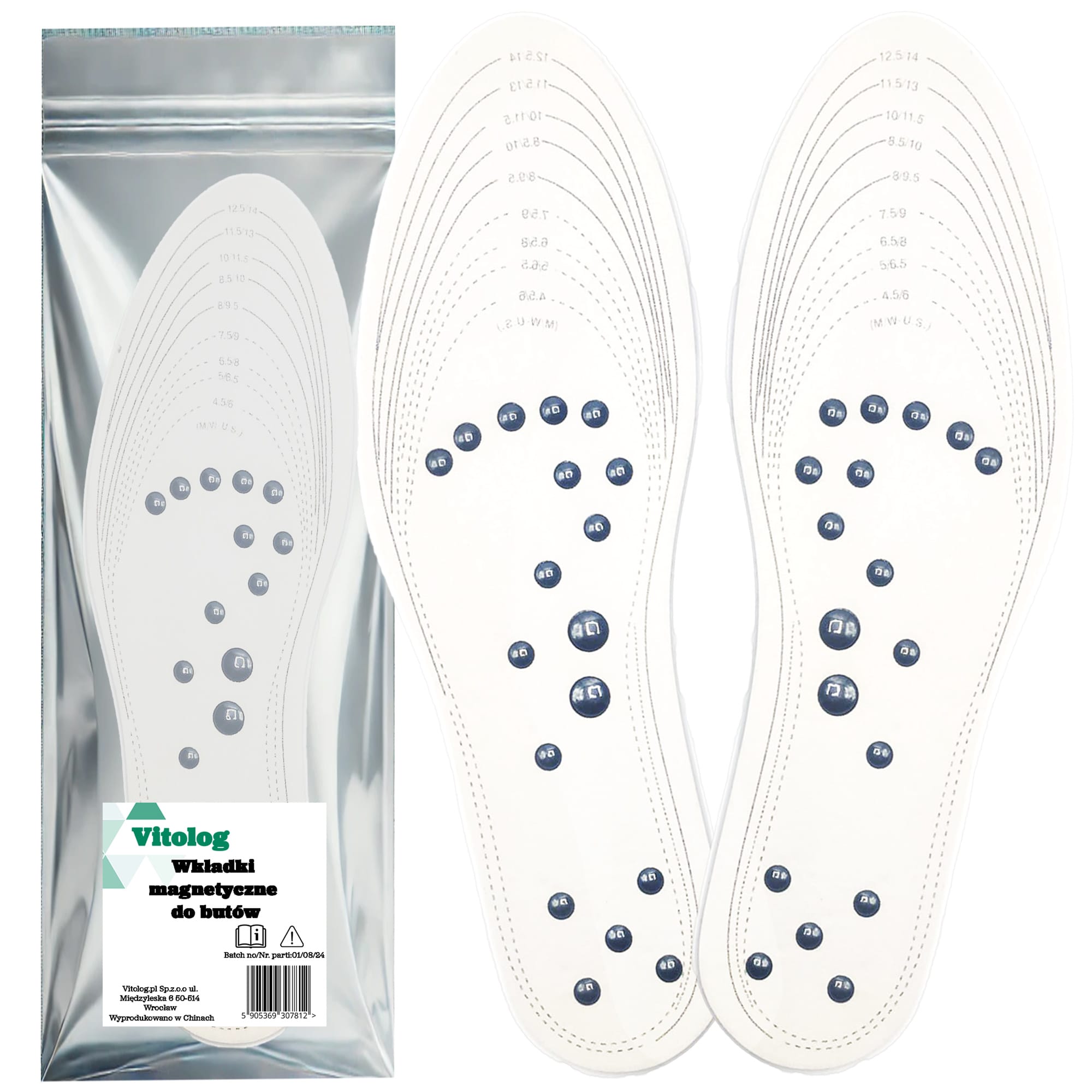 Wkładki magnetyczne z 18 magnesami Vitolog to nowoczesne rozwiązanie, które łączy tradycję akupunktury z nowoczesną technologią magnetoterapii. Dzięki precyzyjnemu rozmieszczeniu magnesów, wkładki te stymulują zakończenia nerwowe na stopach, co wpływa na poprawę funkcjonowania narządów wewnętrznych i układów w ciele. Każdy krok to delikatny masaż, który nie tylko odpręża, ale i wspiera organizm w walce z dolegliwościami bólowymi.
