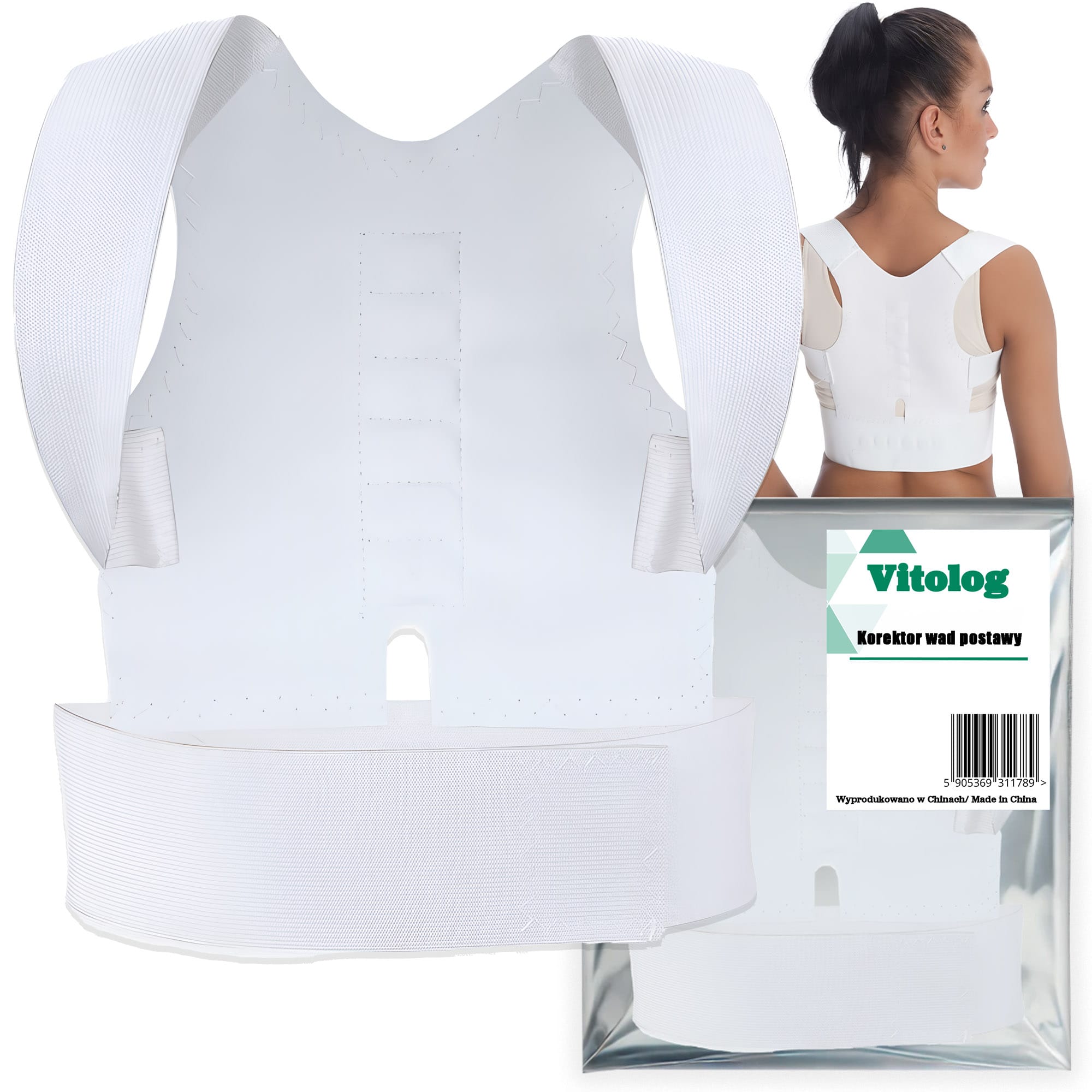 Korektor wykonany jest z elastycznej tkaniny i PU, dzięki czemu można go komfortowo nosić pod ubraniem. Jest lekki, oddychający i nie krępuje ruchów, co sprawia, że idealnie nadaje się do codziennego użytkowania.