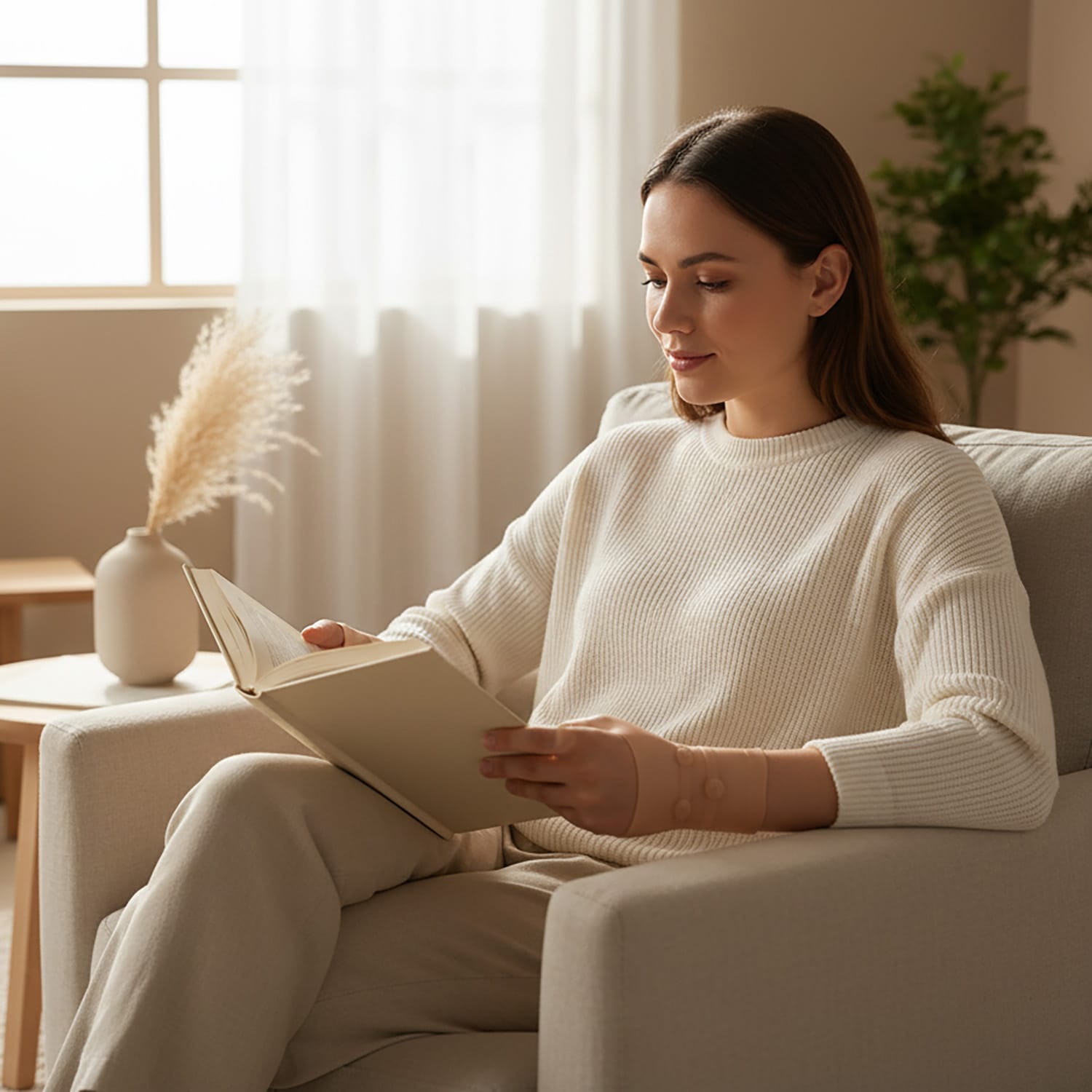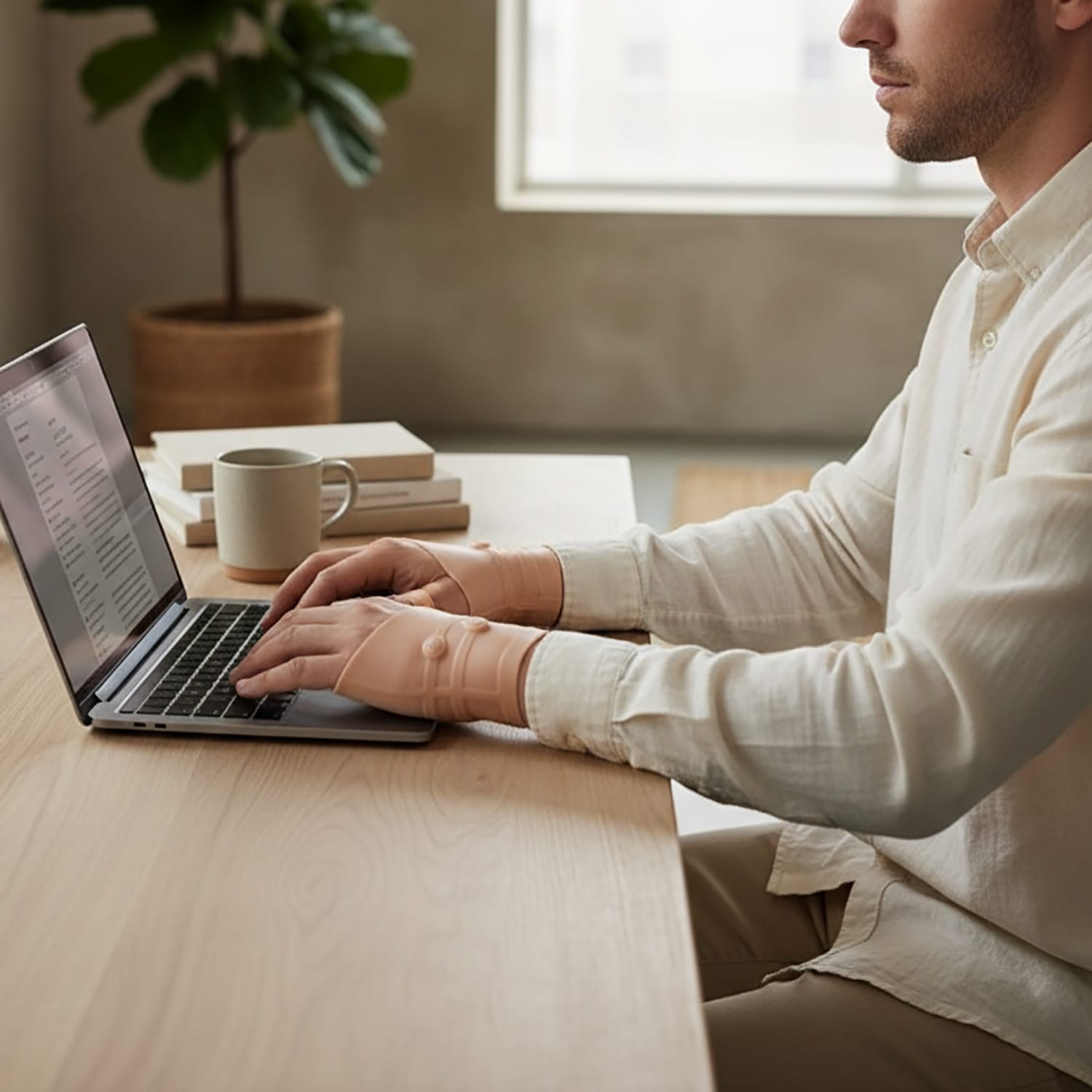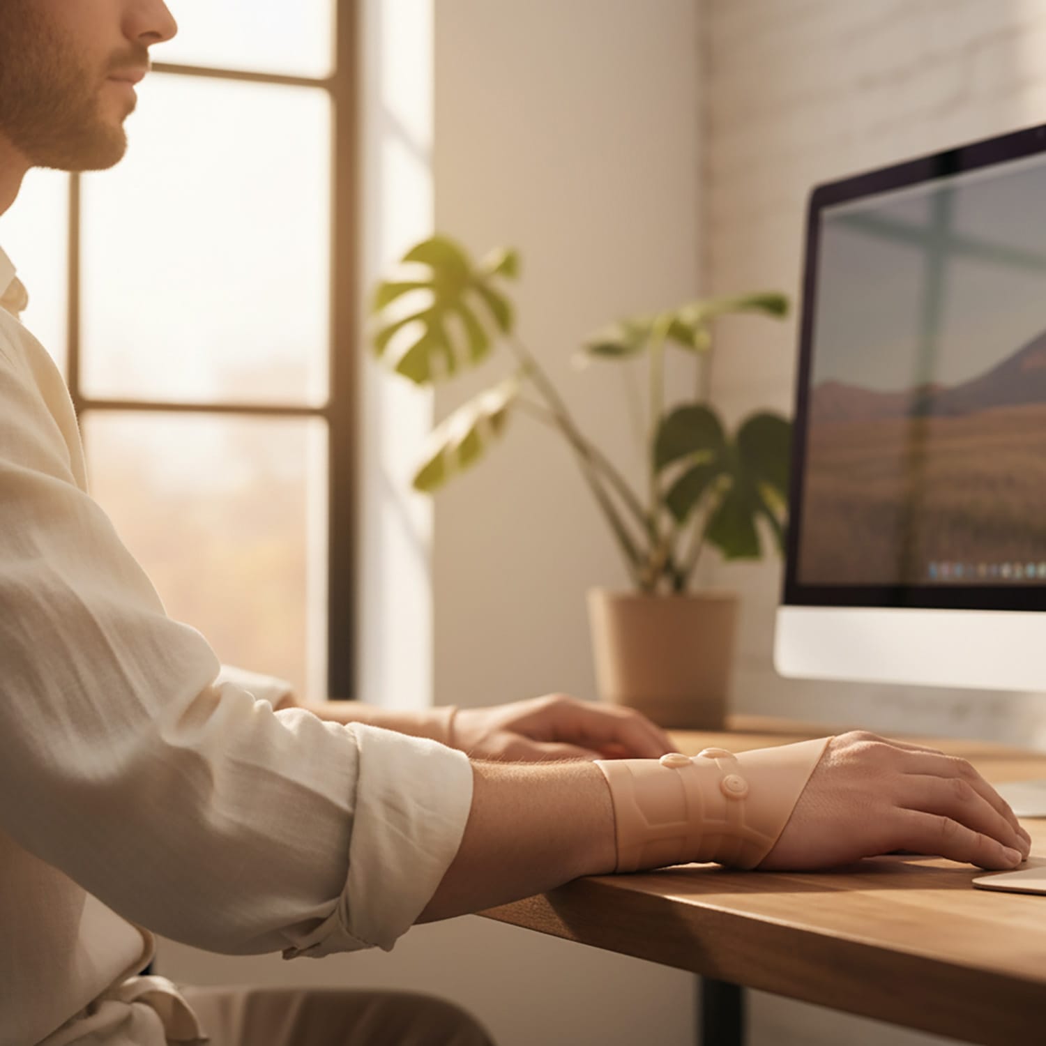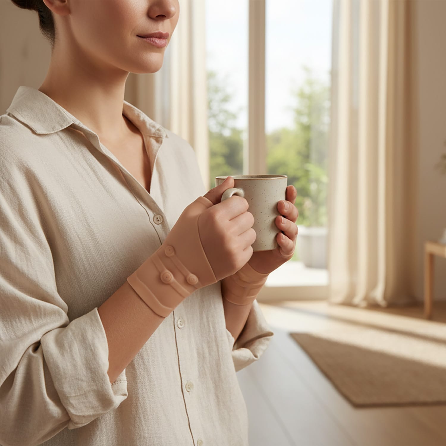 - Pełna dyskrecja i estetyka: Cielisty kolor oraz bardzo cienka struktura sprawiają, że stabilizator jest niemal niewidoczny na dłoni, co pozwala na komfortowe noszenie go w pracy czy podczas spotkań.