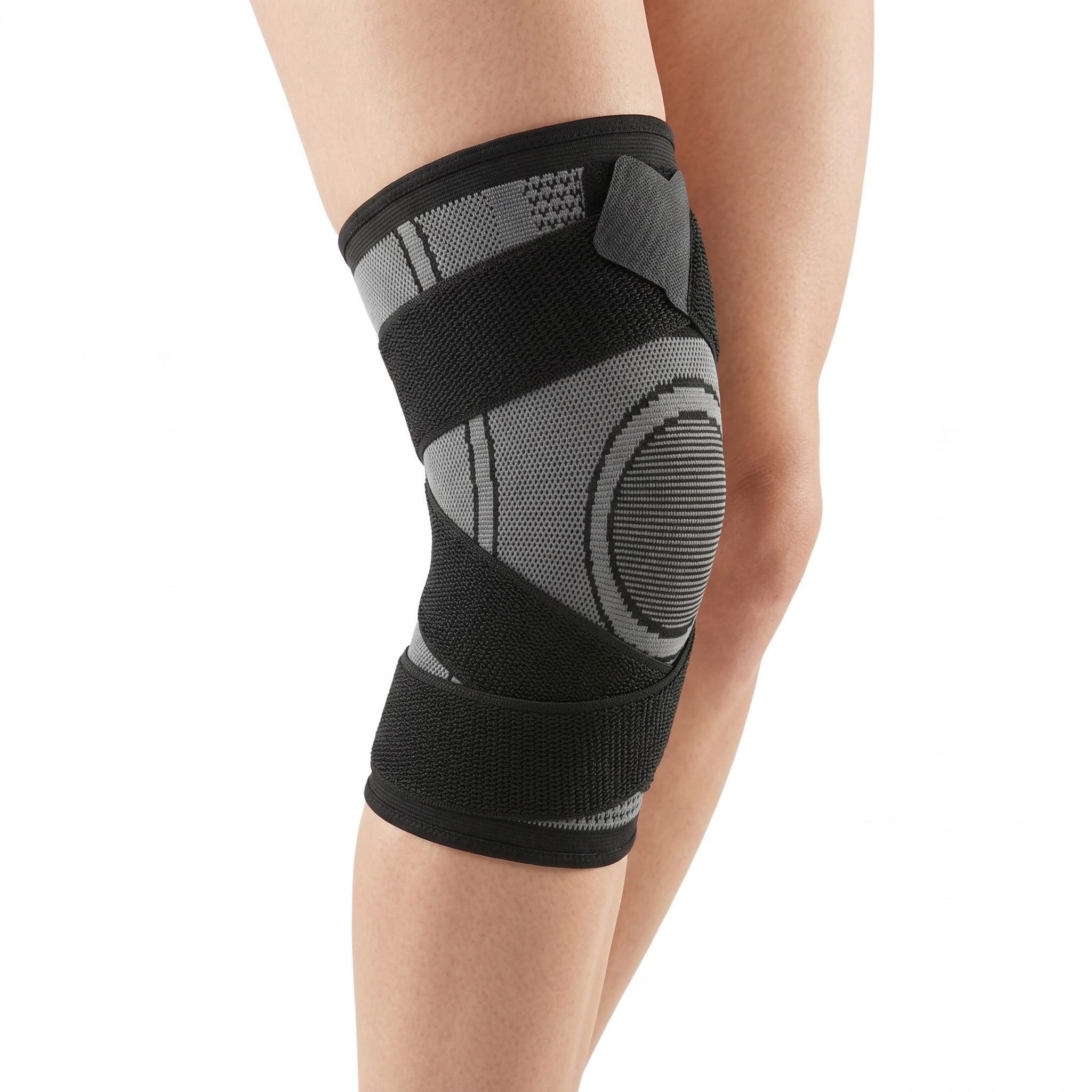 - Technologia Kompresji Strefowej: Stabilizator posiada różne strefy gęstości materiału co pozwala na precyzyjny ucisk tam, gdzie jest on najbardziej potrzebny, wspierając krążenie krwi i redukując obrzęki wokół rzepki.