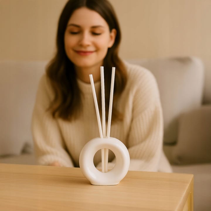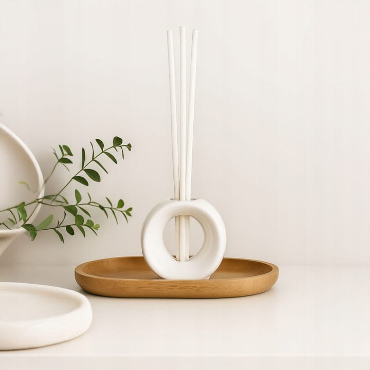 • Pasywny system uwalniania aromatu: Zastosowanie technologii nasączonych patyczków eliminuje konieczność użycia źródeł ciepła (świeczki) lub zasilania elektrycznego. Dzięki temu proces aromatyzacji przebiega w sposób ciągły, bezpieczny i całkowicie bezgłośny, co jest kluczowe w sypialniach i miejscach pracy.